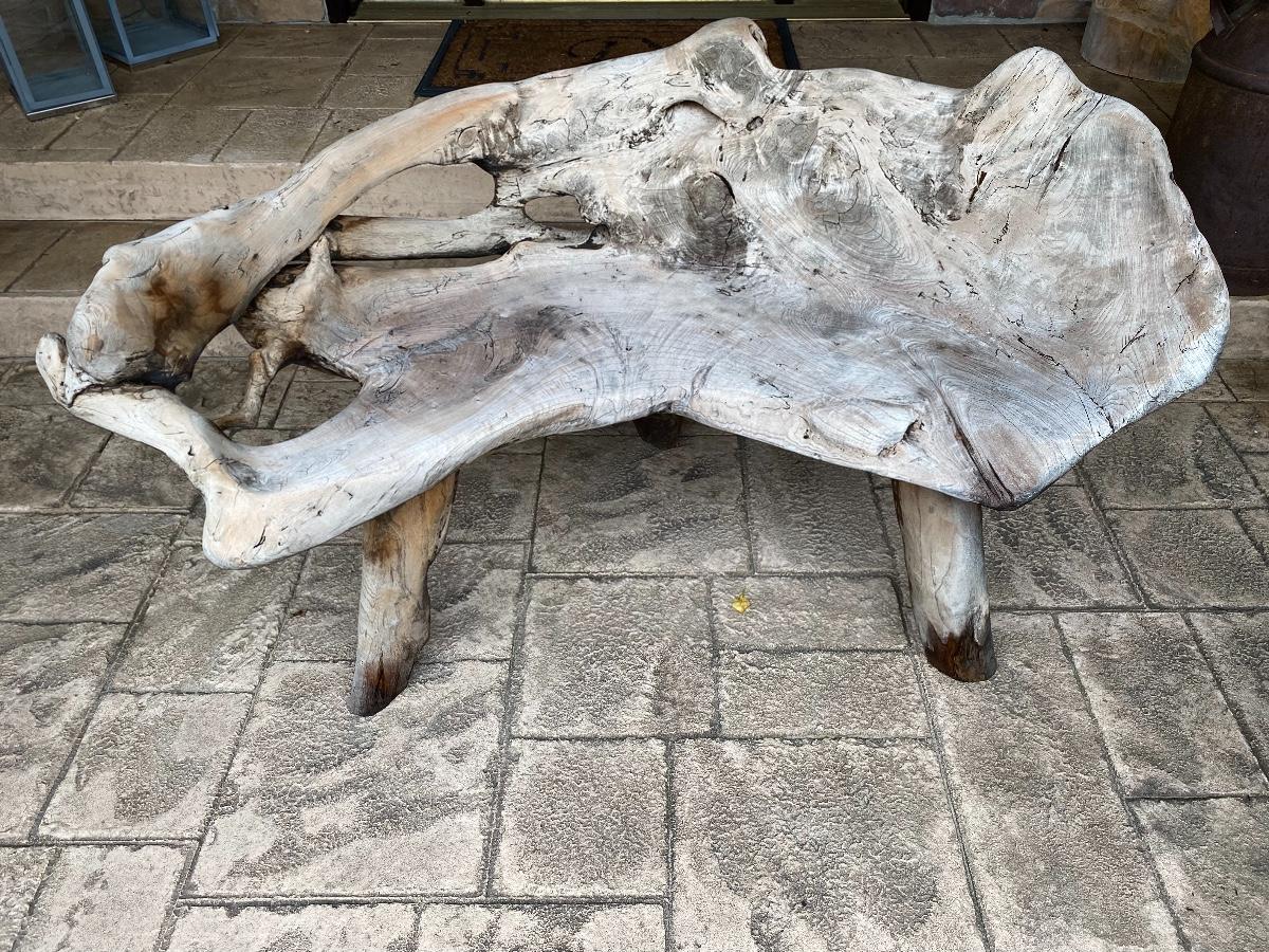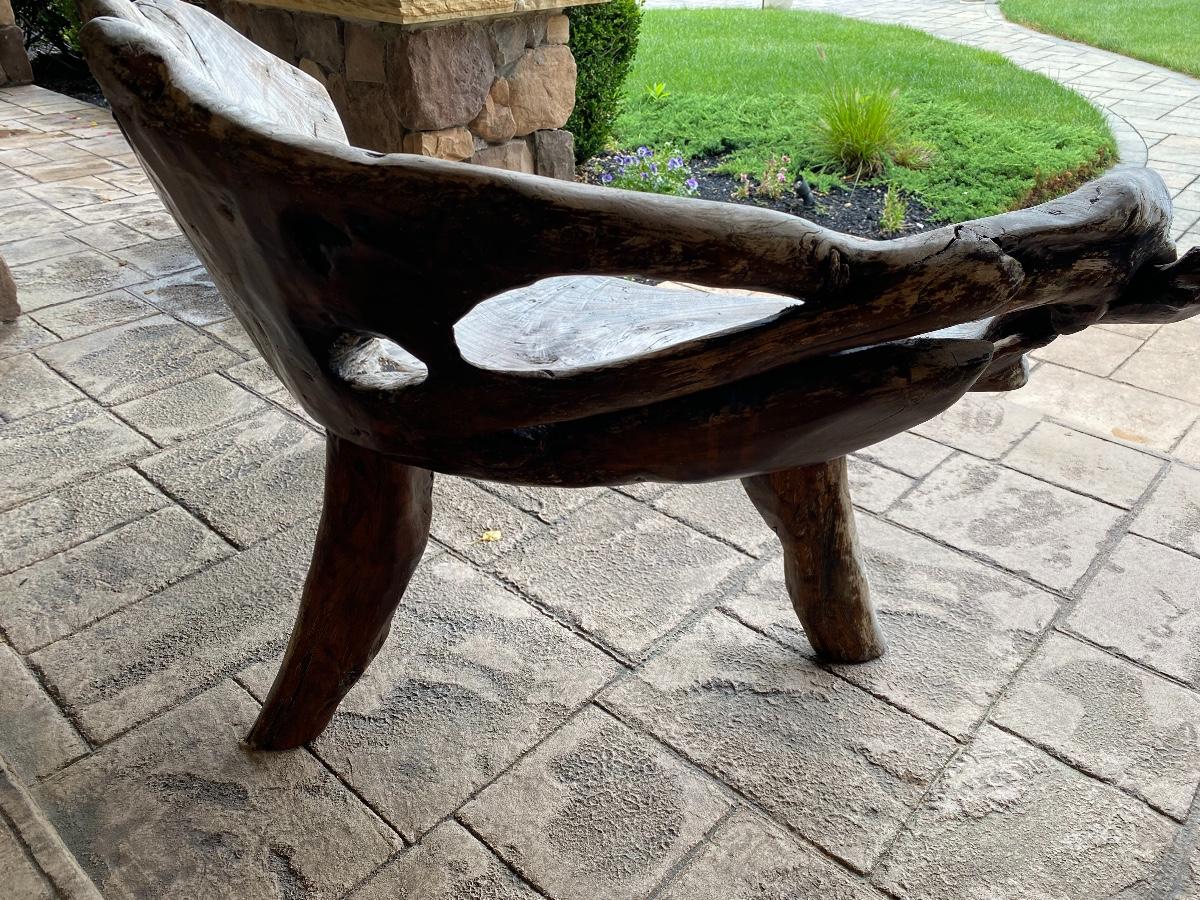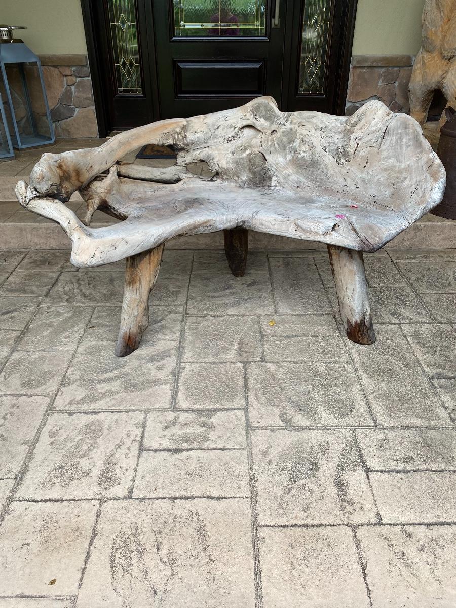 Beautiful bench is made of Teak wood. H31xL51. This is solid and heavy, also very comfortable and a perfect porch or garden accent. Please see all pictures as they are the best representation of the items in the lot, the condition of the lot, and will show measurements if taken. If purchasing furniture you must be able to move yourself with your own help, and truck.