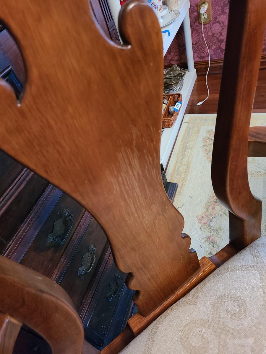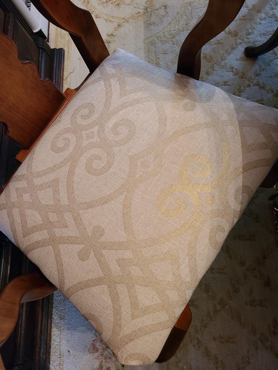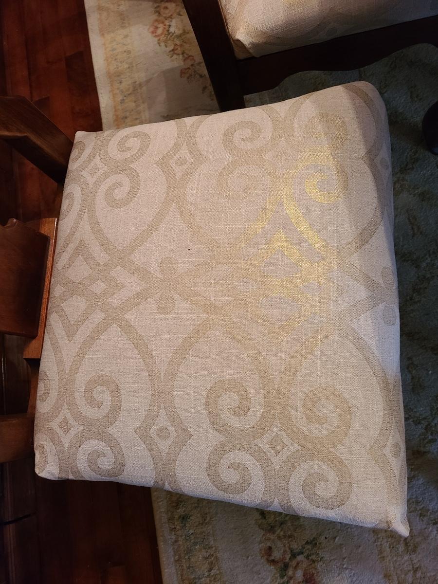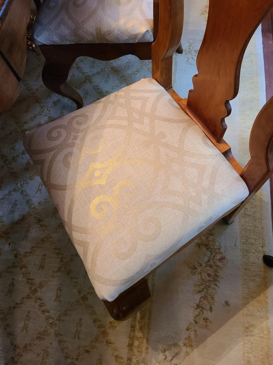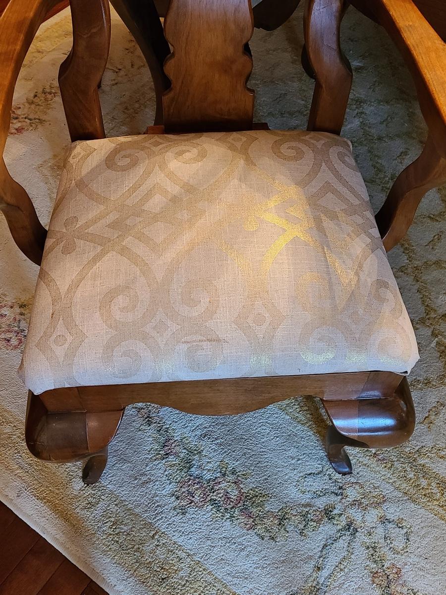 This dining room table is gorgeous and comes with two leaves, and table covers. The chairs have been recovered with gold accent fabric and are gorgeous as stand alone pieces or with the table. One or two show minor wear. Please see all pictures as they are the best representation of the items in the lot, the condition of the lot, and will show measurements if taken. If purchasing furniture you must be able to move yourself with your own help, and truck.
