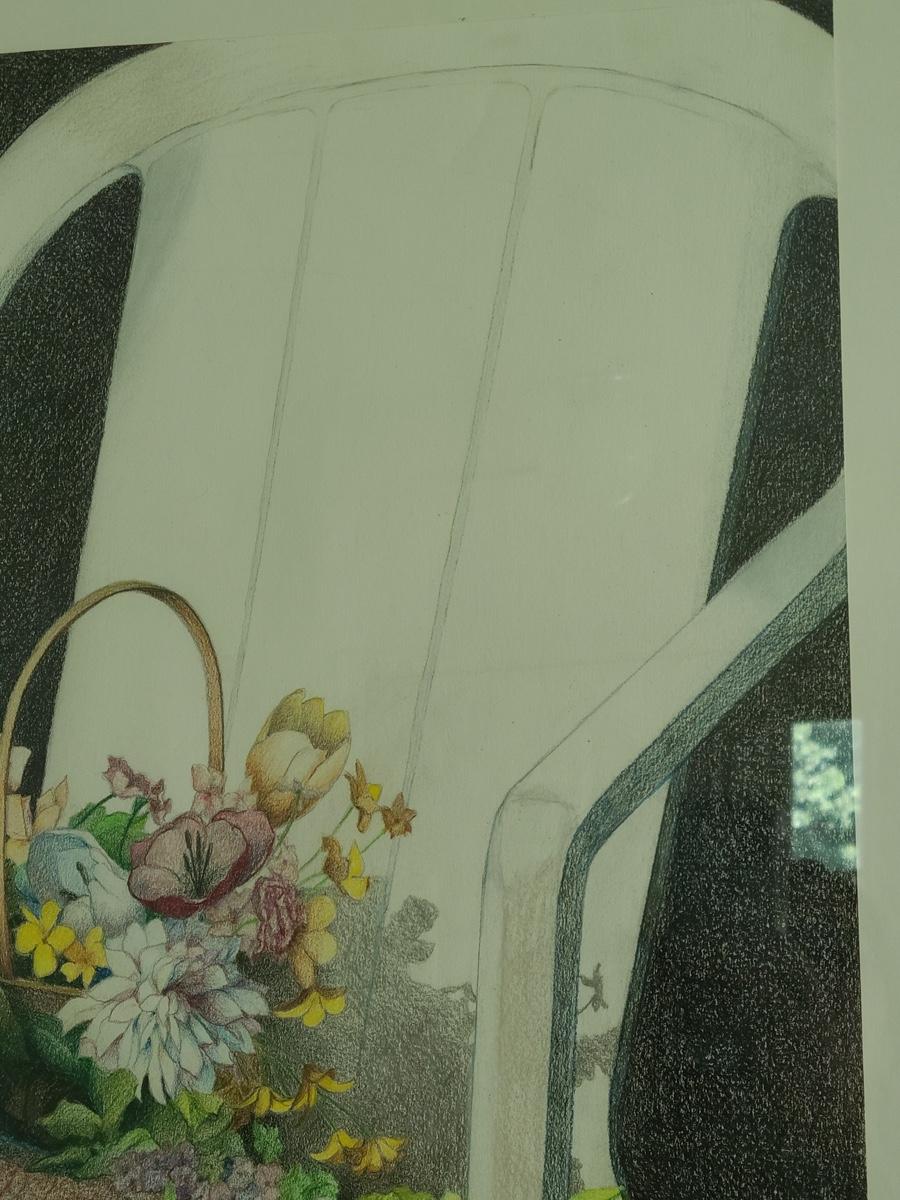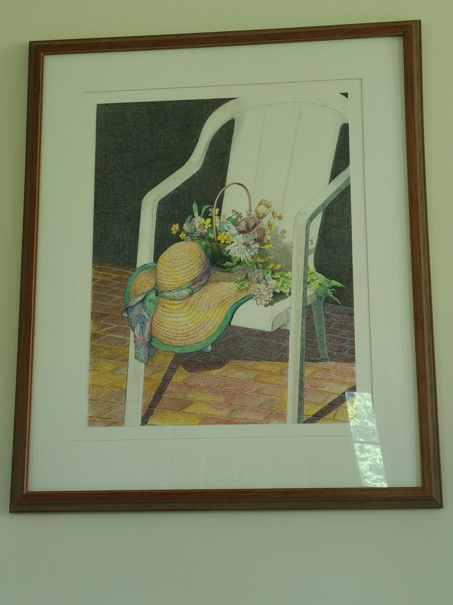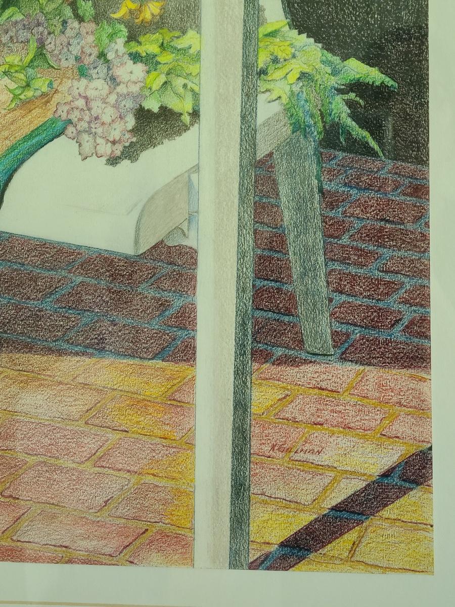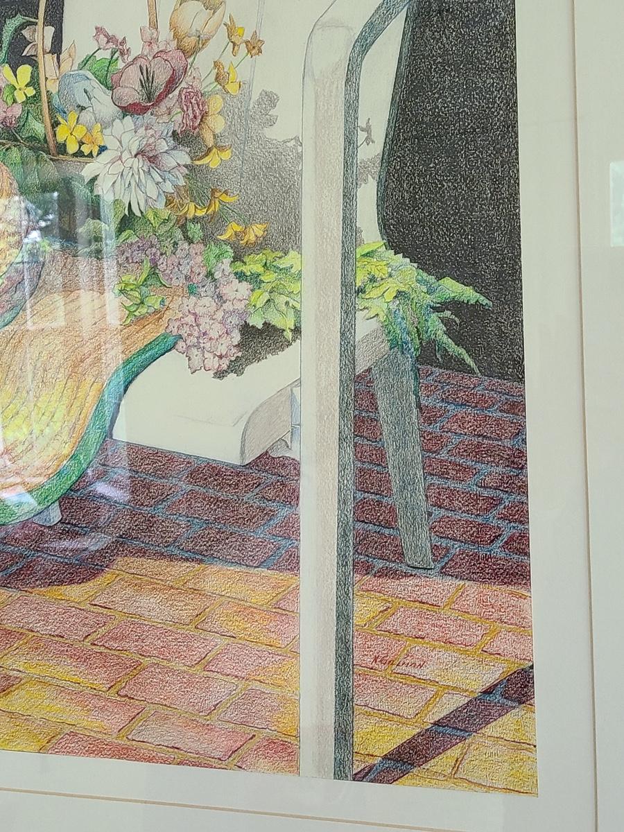 This is a beautiful pencil drawing of sunhat and flowers on white porch chair. The colors are lovely and this would accent any room perfectly. Please see all pictures for content of the lot, condition of the lot, and measurements if taken. Pictures are the best representation of the items listed and items are untested unless indicated in description. Thank you for looking and have fun bidding![