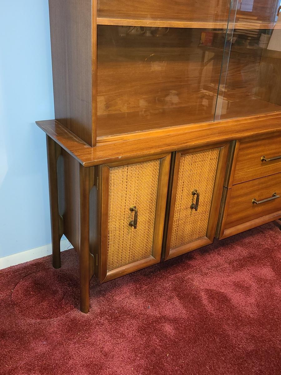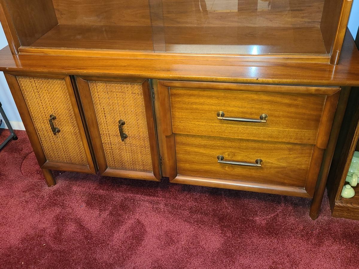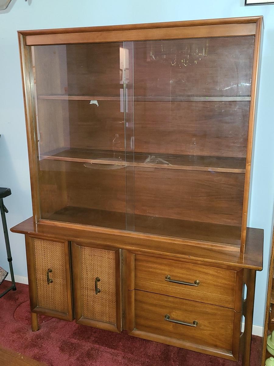 This is a very cool MCM piece that can be used as a bookshelf without the glass doors for ease, or as a display or collectibles cabinet. These are functional in any room of the house! Solid, not makers mark noted, and it looks to be one piece so you will need help to bring down one set of stairs, and need a truck. Items in drawers will be removed and are not included. 50x17x65 inches tall. Please see all pictures as they are the best representation of the items. The pictures show condition, measurements if taken, and what is included in the lot. Due to the large amount that we photograph and the time frame, we are not always able to take measurements. All items unless noted, are pre-owned and have been used. If you purchased furniture, you must bring help. We do not allow one person to carry large furniture out on their own. Bring help, tools and a truck for the safety of our client’s homes, and your personal safety. Company policy. Thank you.