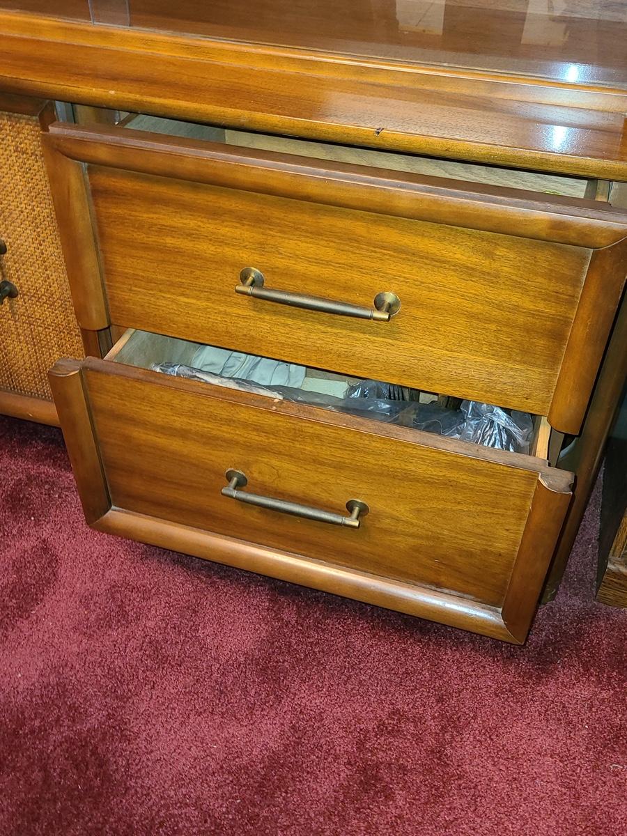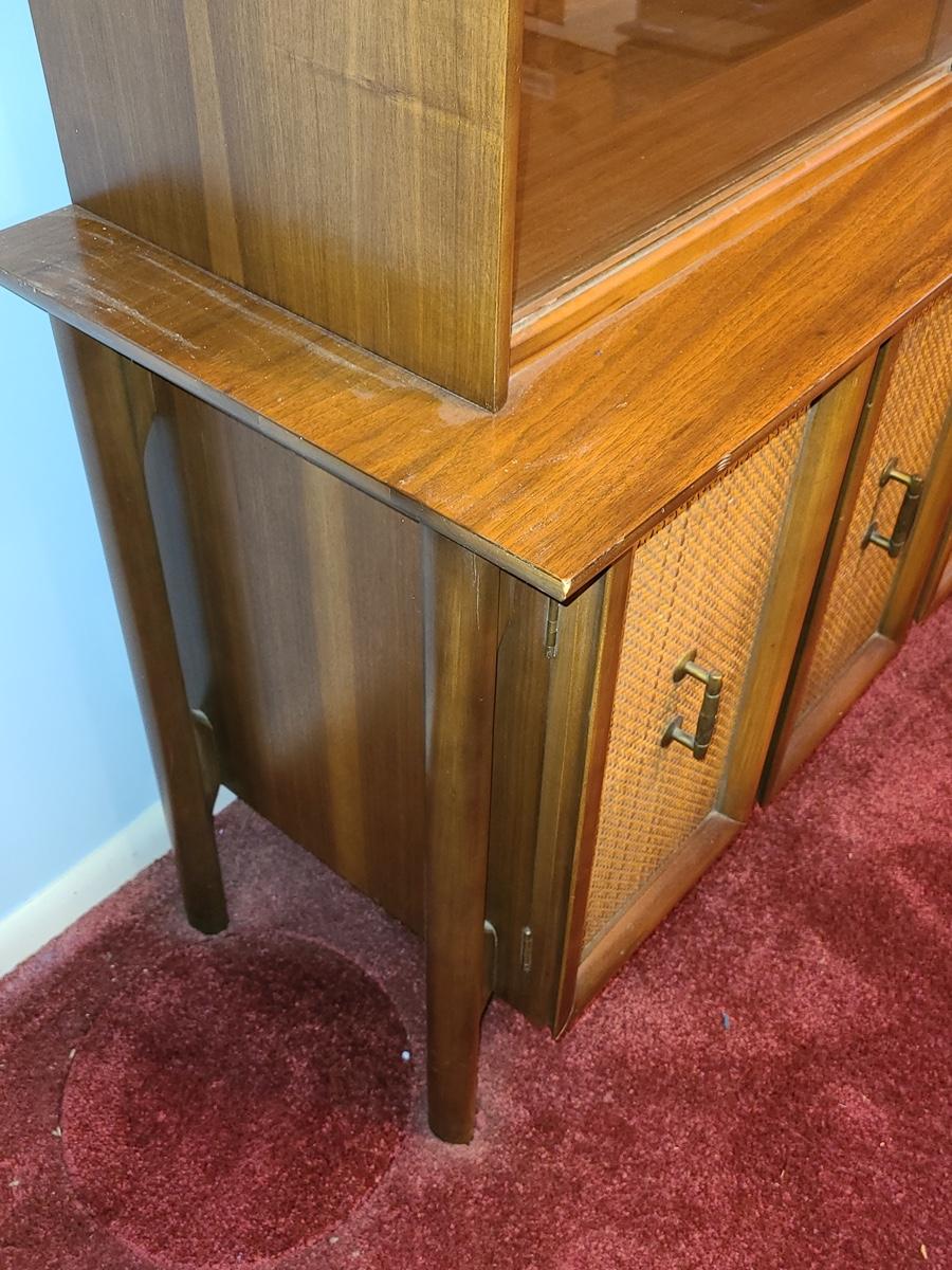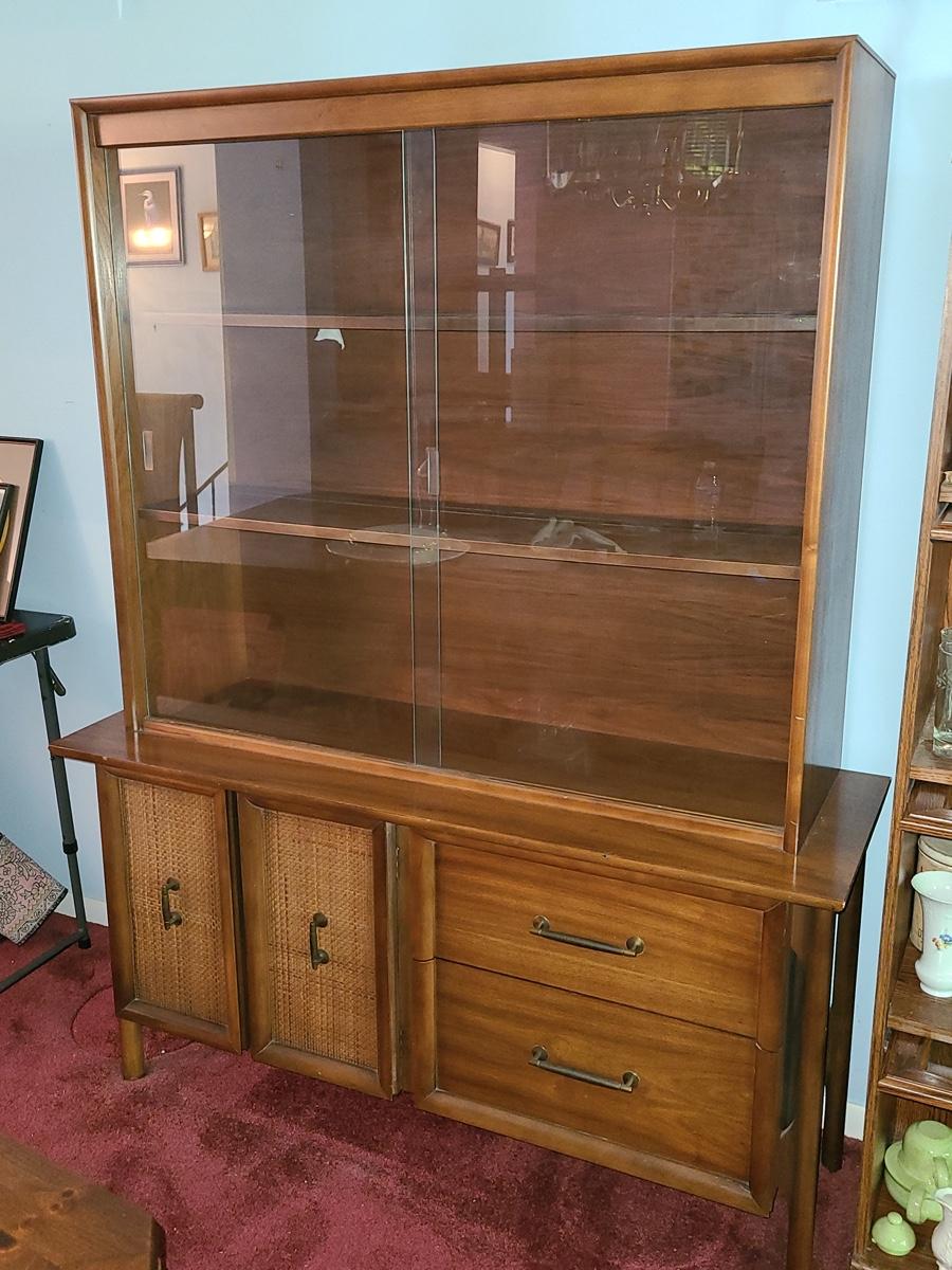 This is a very cool MCM piece that can be used as a bookshelf without the glass doors for ease, or as a display or collectibles cabinet. These are functional in any room of the house! Solid, not makers mark noted, and it looks to be one piece so you will need help to bring down one set of stairs, and need a truck. Items in drawers will be removed and are not included. 50x17x65 inches tall. Please see all pictures as they are the best representation of the items. The pictures show condition, measurements if taken, and what is included in the lot. Due to the large amount that we photograph and the time frame, we are not always able to take measurements. All items unless noted, are pre-owned and have been used. If you purchased furniture, you must bring help. We do not allow one person to carry large furniture out on their own. Bring help, tools and a truck for the safety of our client’s homes, and your personal safety. Company policy. Thank you.