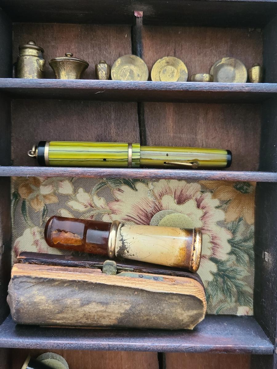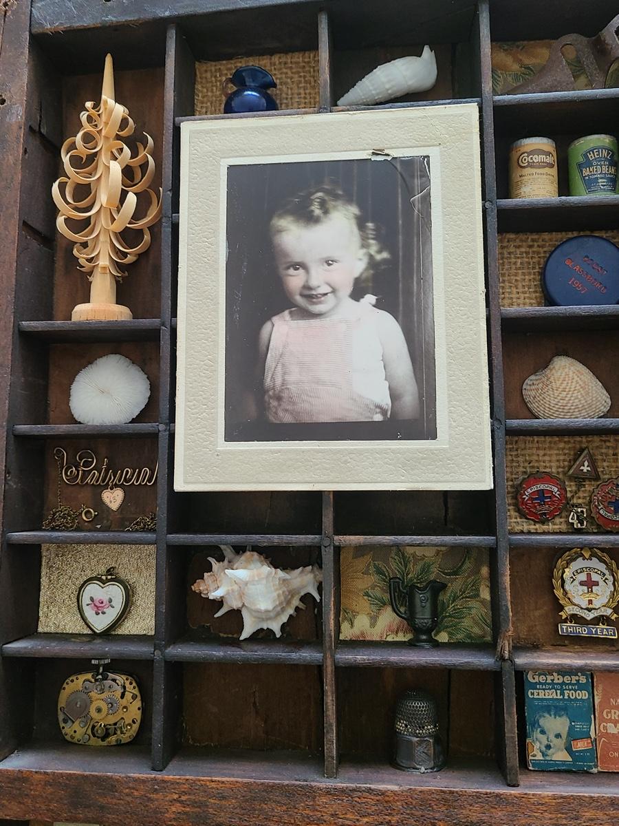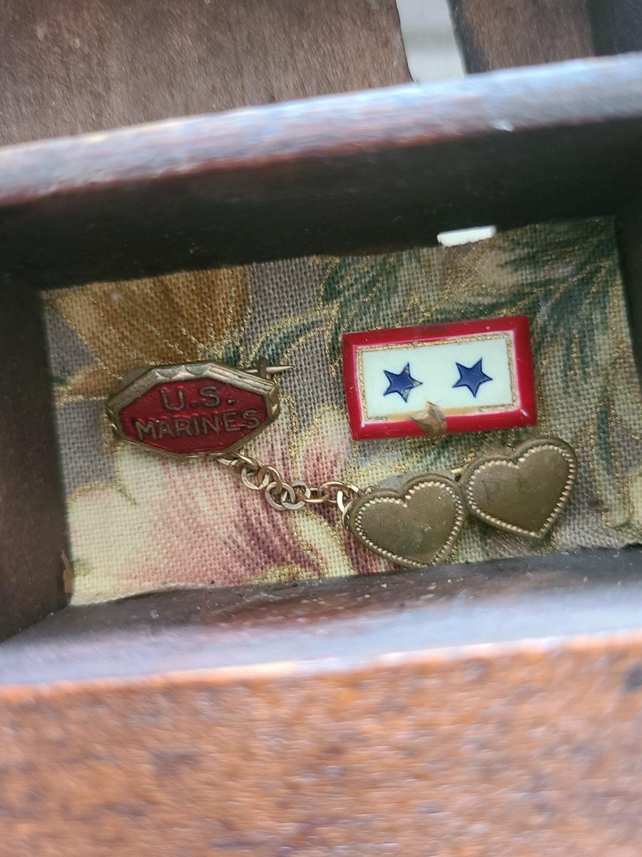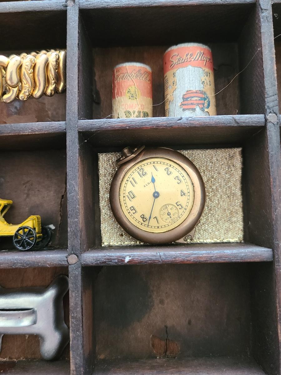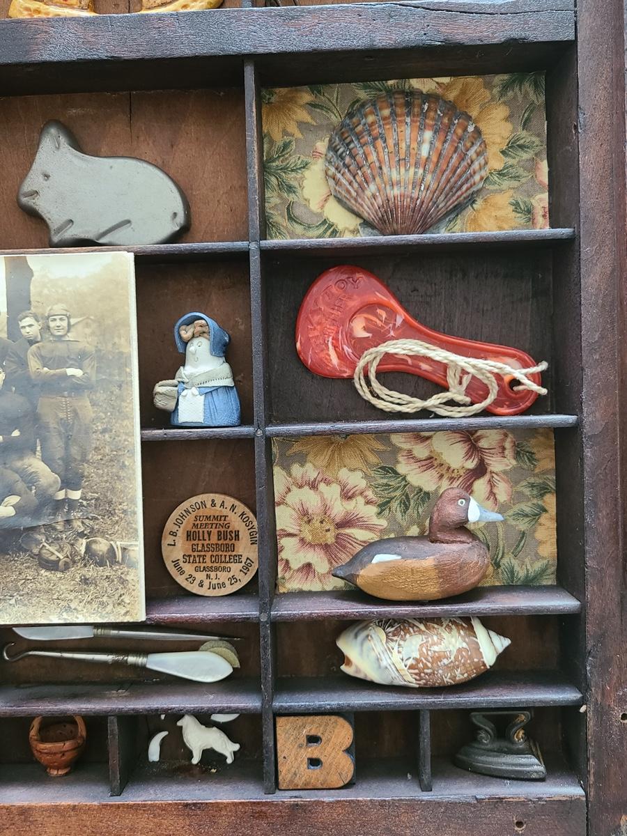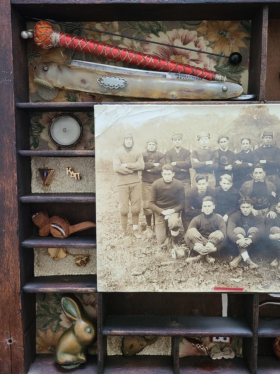 16x33 inches tall. This is an amazing collection of antique collectibles & pictures of family momento's including: mini fountain pen, Order of the Rainbow medals, Binky Toy Teether, pipe parts, jewelry, Girls Scouts, pocket watches, Chester Ford Badge and More. This has been wall mounted and has a glass cover. Some of the items have velcro on back to keep in place, some a glue dot, and some are just sitting in section. Please see all pictures for content of the lot, condition of the lot, and measurements if taken. Pictures are the best representation of the items listed and items are untested unless indicated in description. Thank you for looking and have fun bidding![