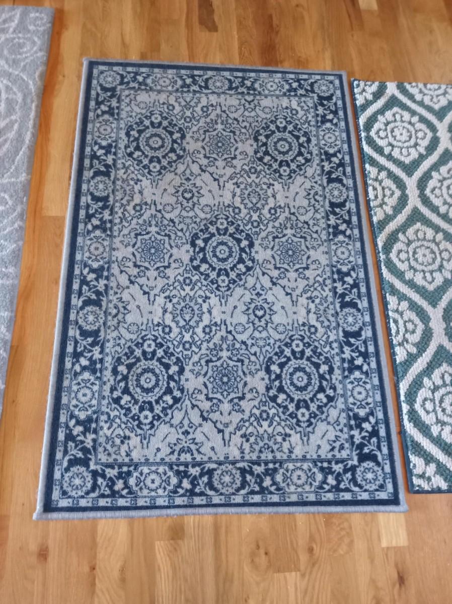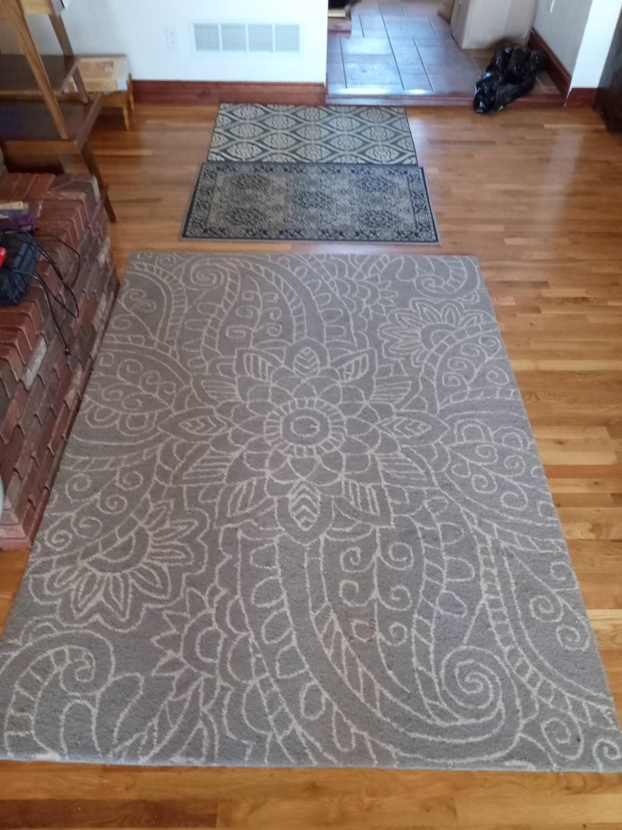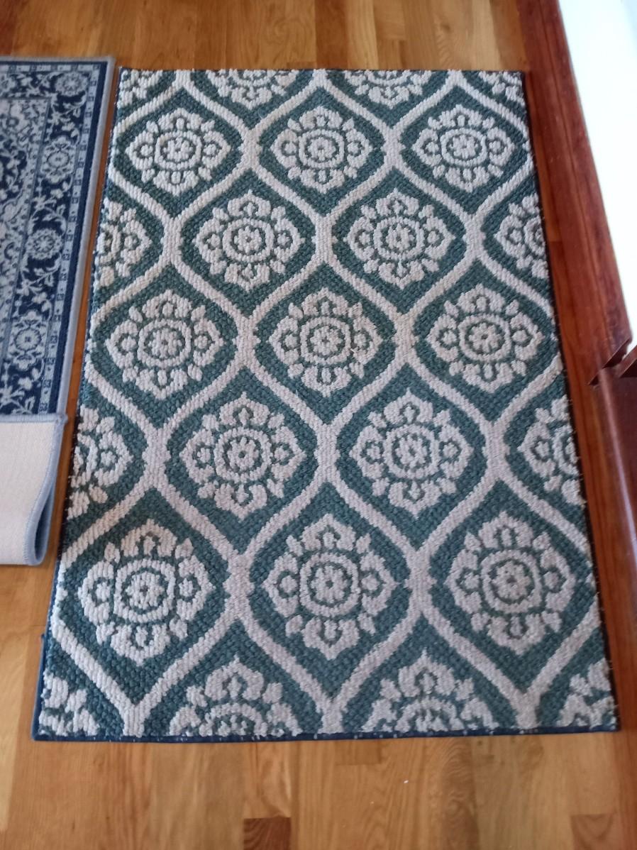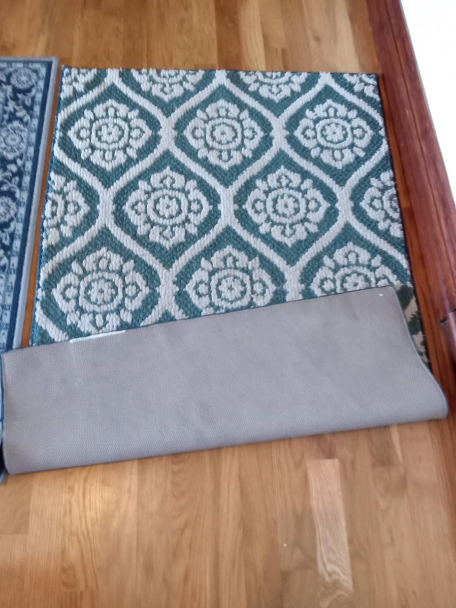 BOTH THROW RUGS HAVE RUBBER BACKS, THE LARGEST IS 47" X 29'