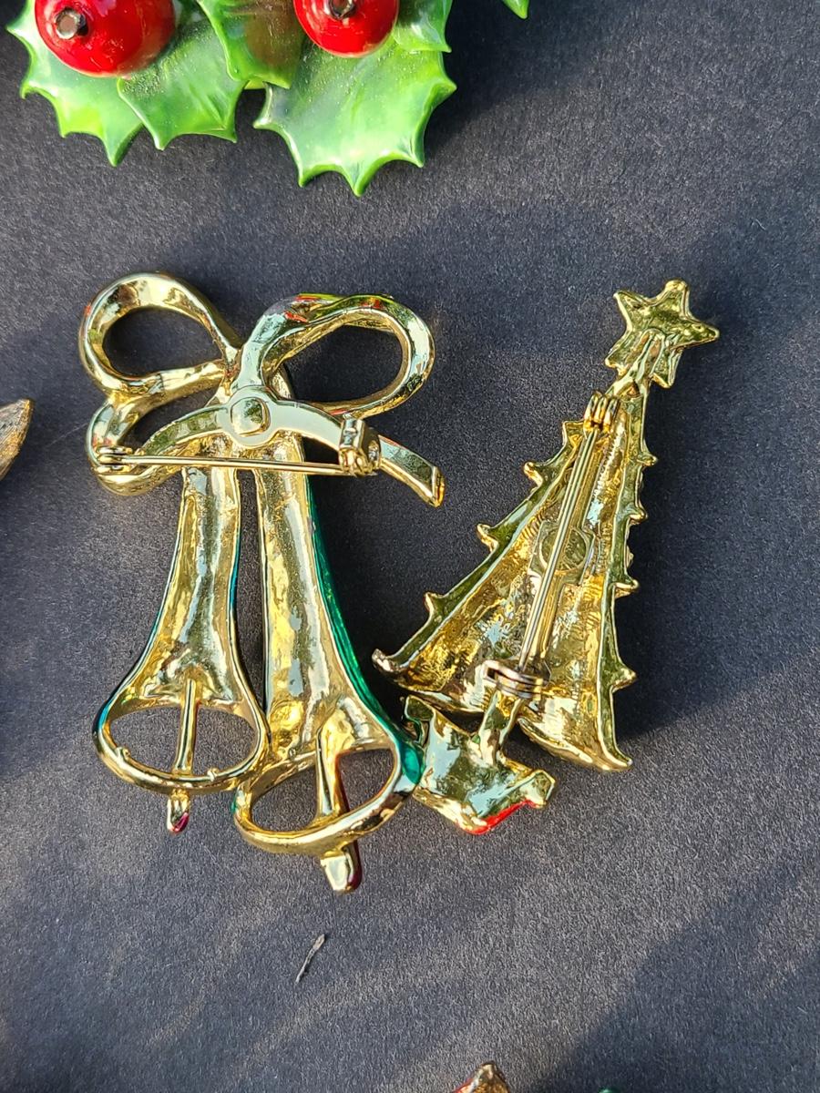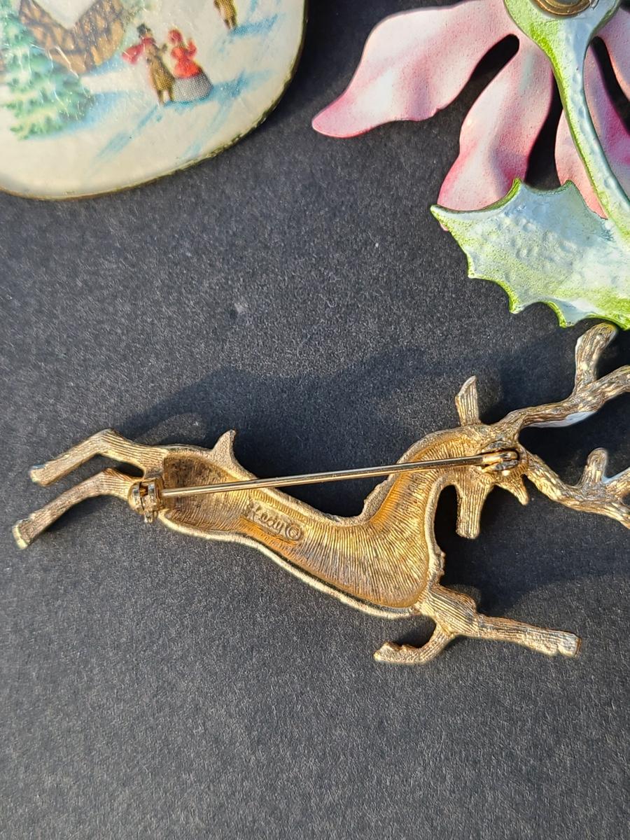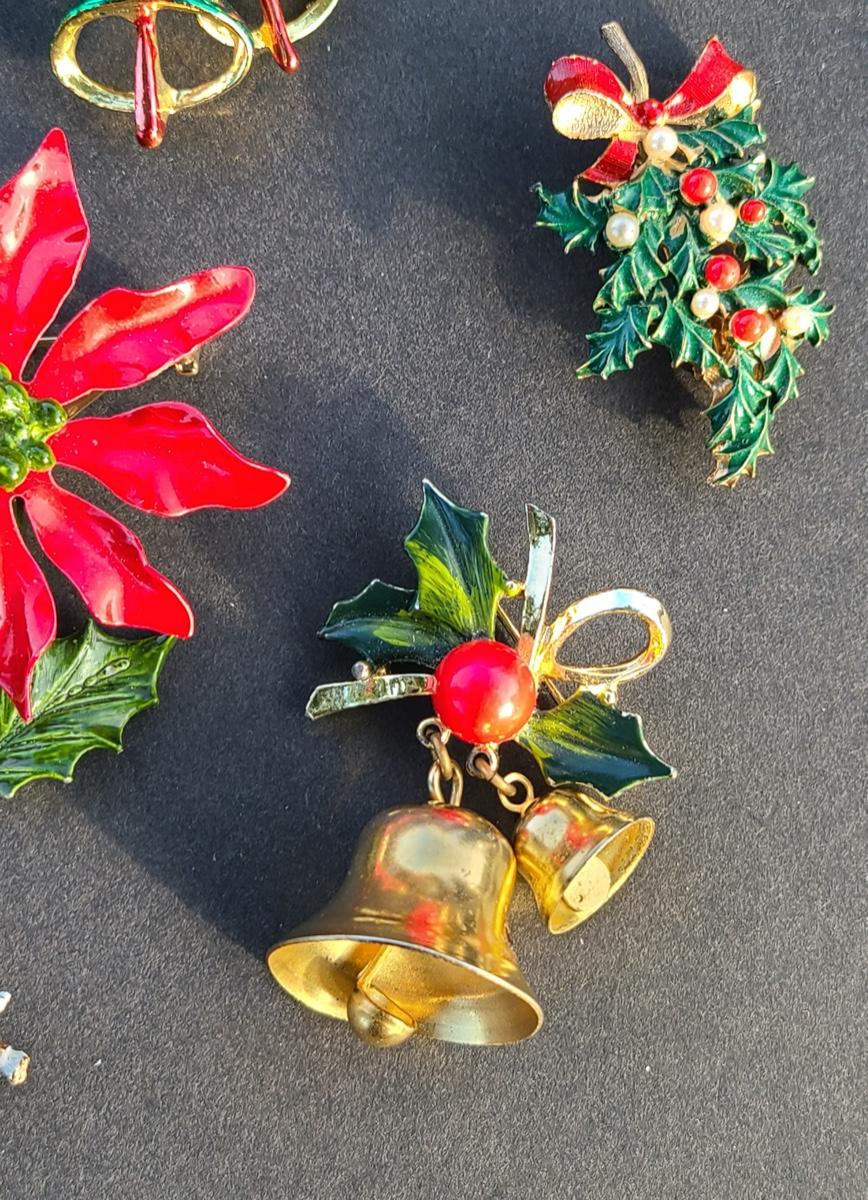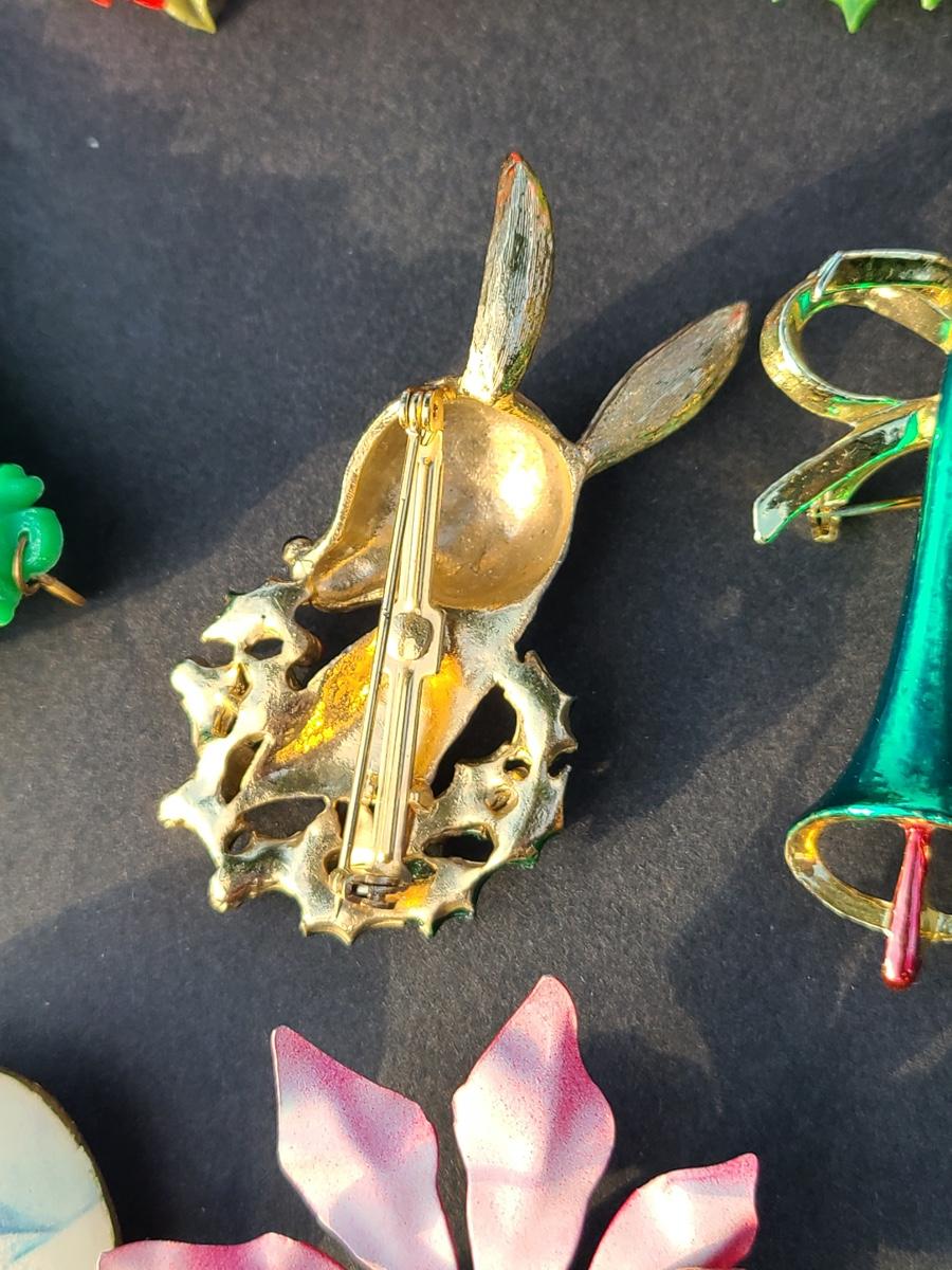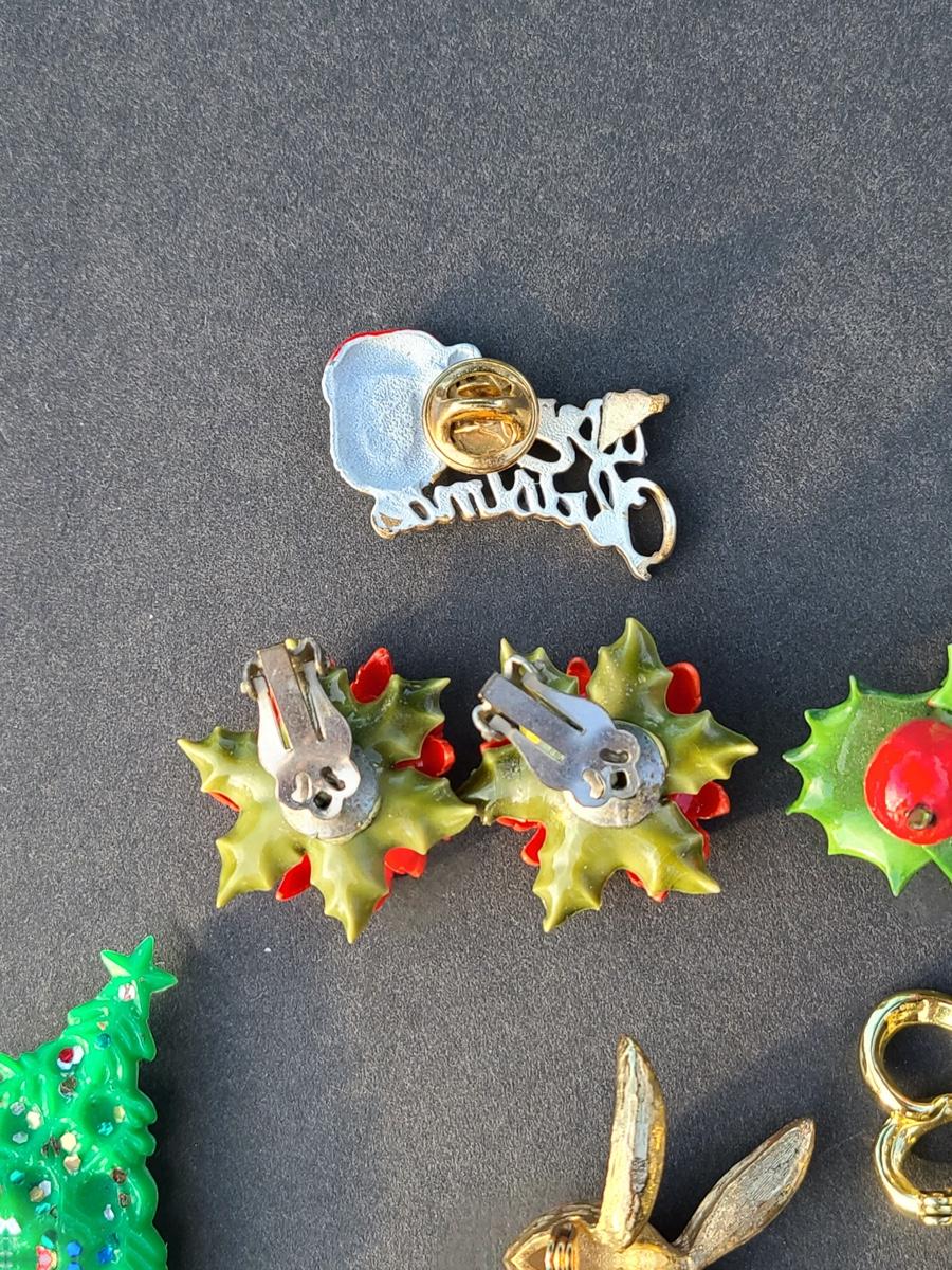 Lot 501: Vintage Holiday Brooches: Rudolph, Santa, Poinsettia and More