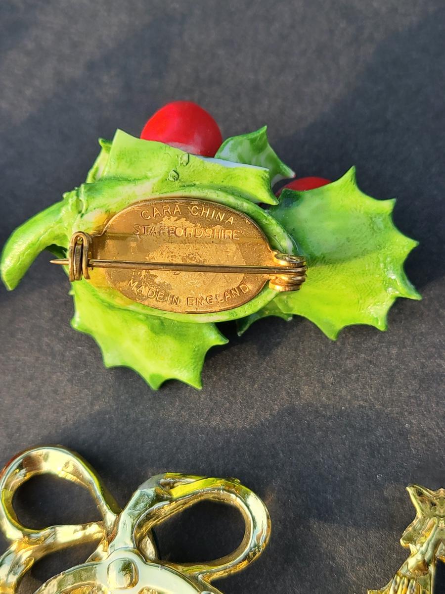 Lovely lot of vintage holiday pins, the English bone china one does have a break in the top leaf, but it still is lovely and could be repaired easily with acrylics and enamel polish, so only you would know when wearing. This is mixed with some being enamel overlay, and some being flashed painted metal. Gorgeous holiday lot to love! Please see all pictures as they are the best representation of the items. The pictures show condition, measurements if taken, and what is included in the lot. Due to the large amount that we photograph and the time frame, we are not always able to take measurements. All items unless noted, are pre-owned and have been used. If you purchased furniture, you must bring help. We do not allow one person to carry large furniture out on their own. Bring help, tools and a truck for the safety of our client’s homes, and your personal safety. Company policy. Thank you.