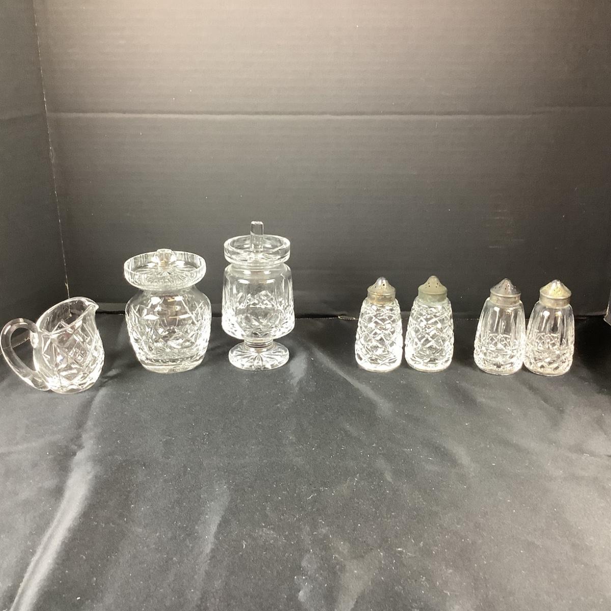 Lot 5014. Waterford  Salt/Pepper Sets, Creamer, Mustard Jar, Jam Jar