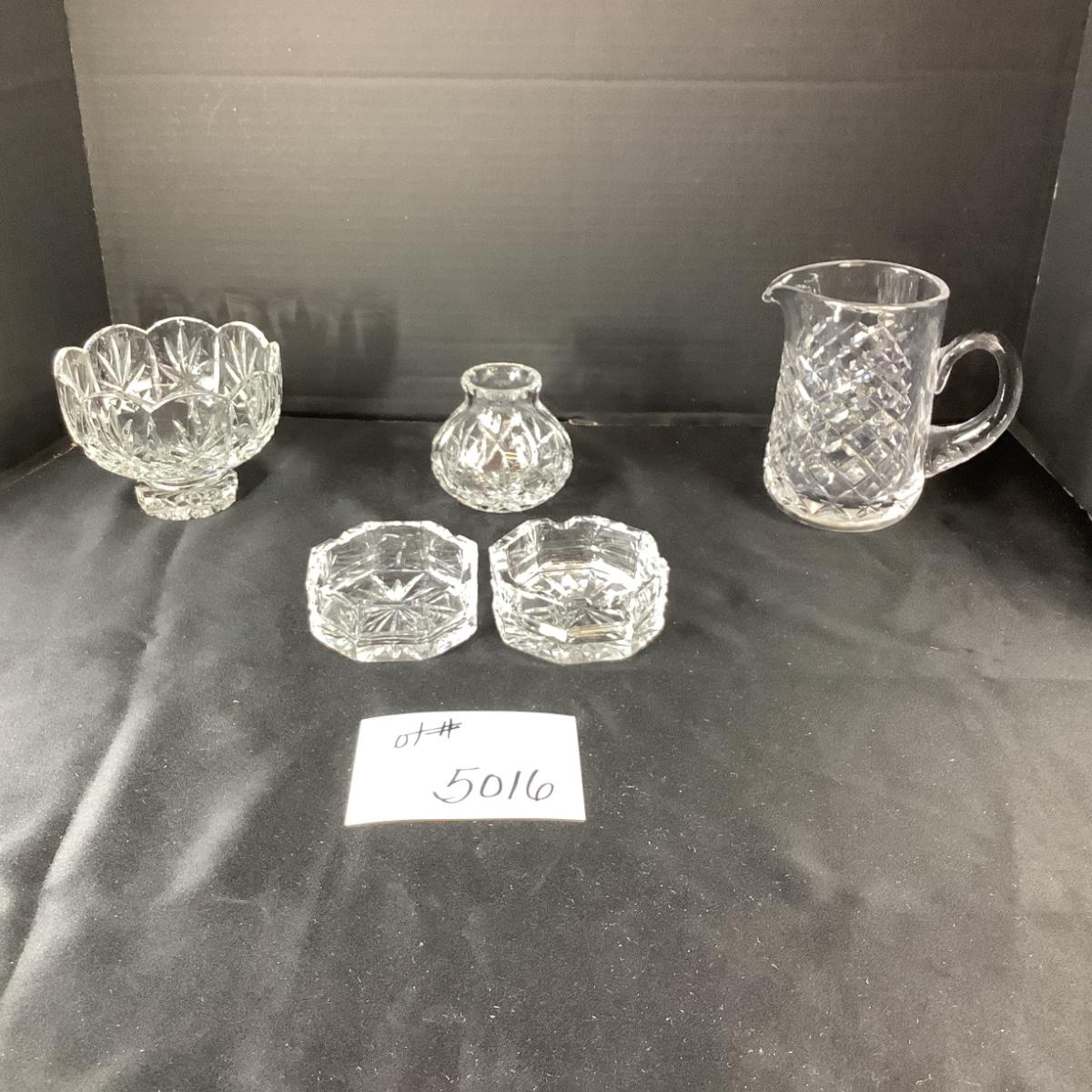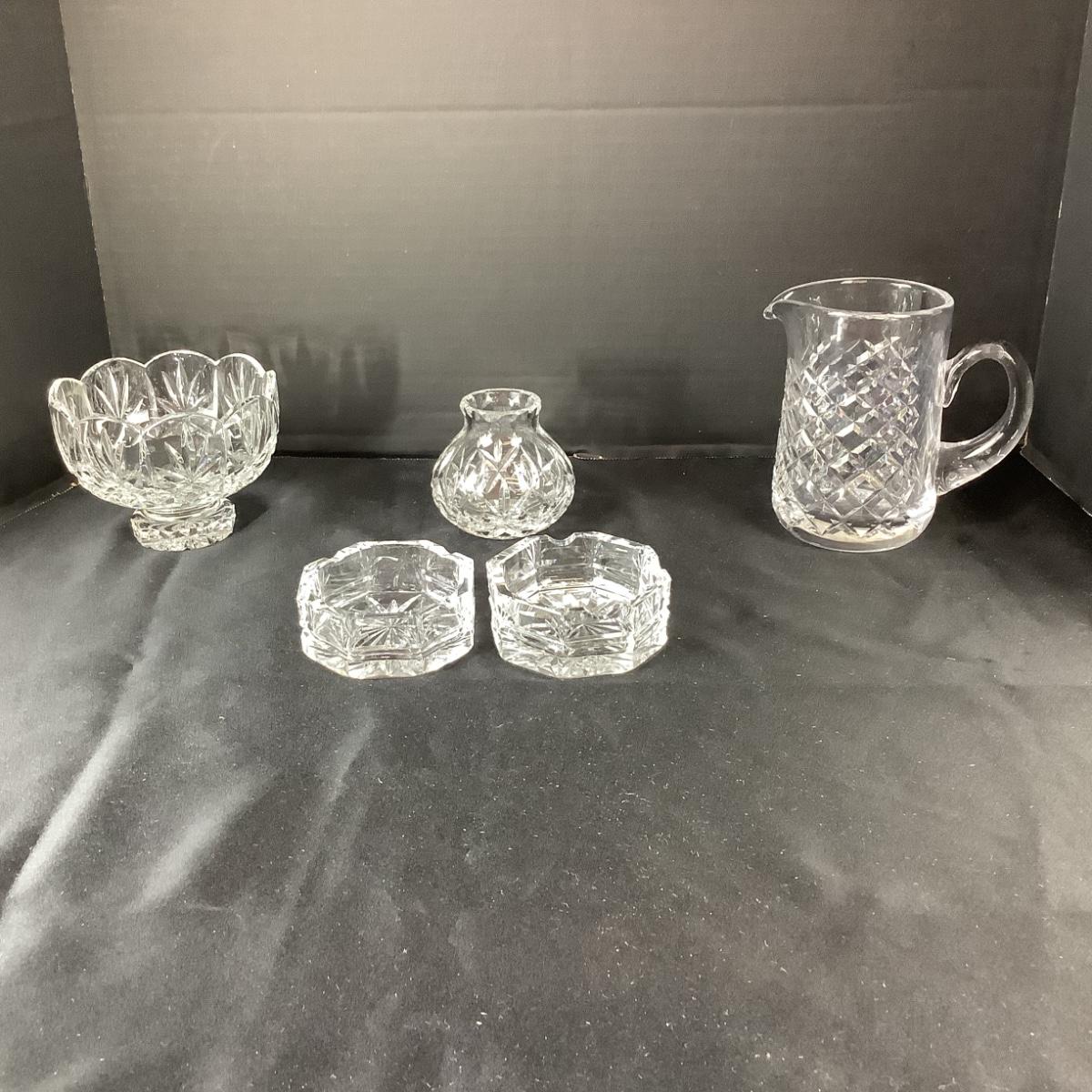 Lot 5016. Waterford Lismore Jug, Ash Trays, Vase, Pedestal Bowl