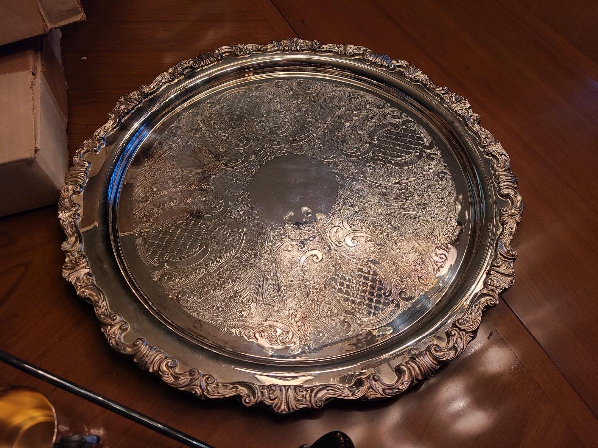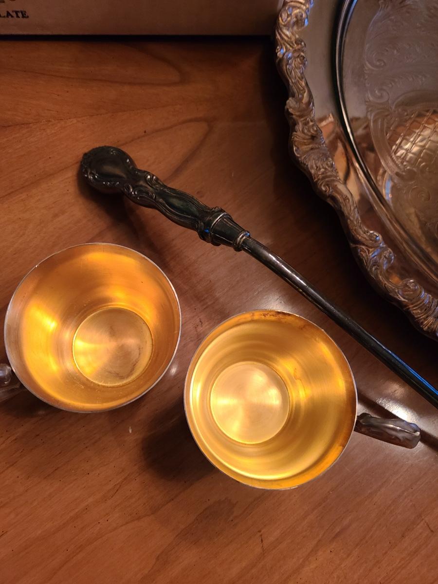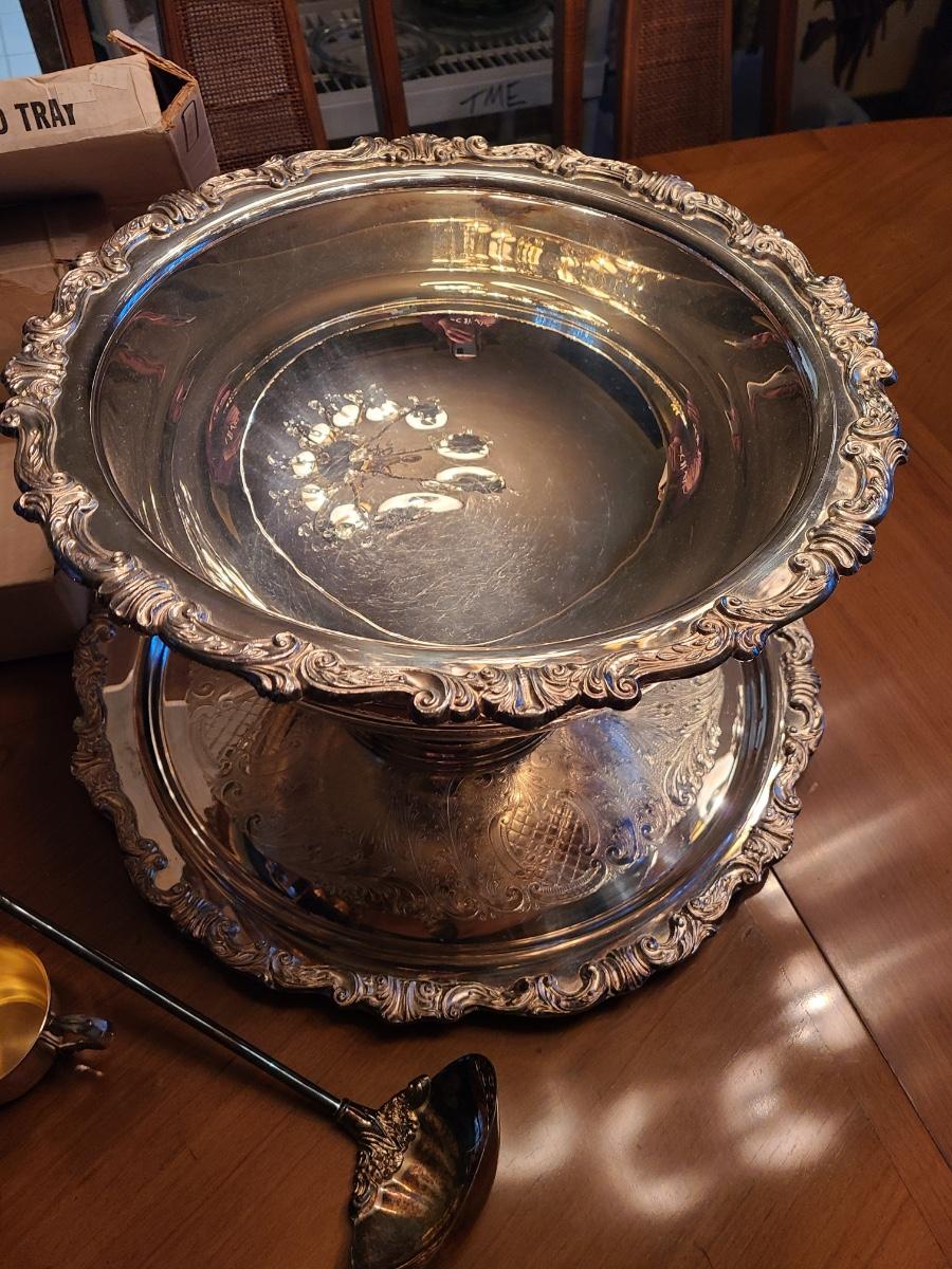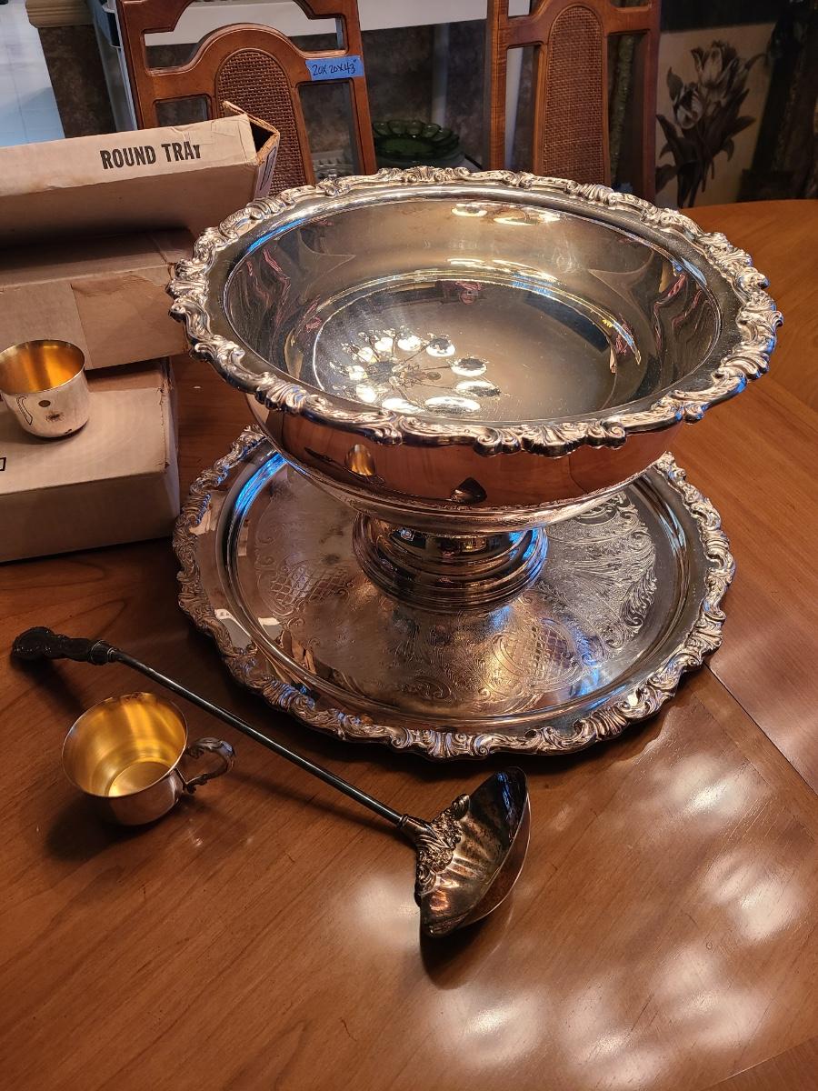 This is a large set and comes with the label, punch bowl, tray, and twelve cups. The set is Silver-plate and the interior cups of the cups are gold-tone to match her gold place settings. Everything has a box, except for the bowl. Please see all pictures as they are the best representation of the items. The pictures show condition, measurements if taken, and what is included in the lot. Due to the large amount that we photograph and the time frame, we are not always able to take measurements. All items unless noted, are pre-owned and have been used. If you purchased furniture, you must bring help. We do not allow one person to carry large furniture out on their own. Bring help, tools and a truck for the safety of our client’s homes, and your personal safety. Company policy. Thank you.