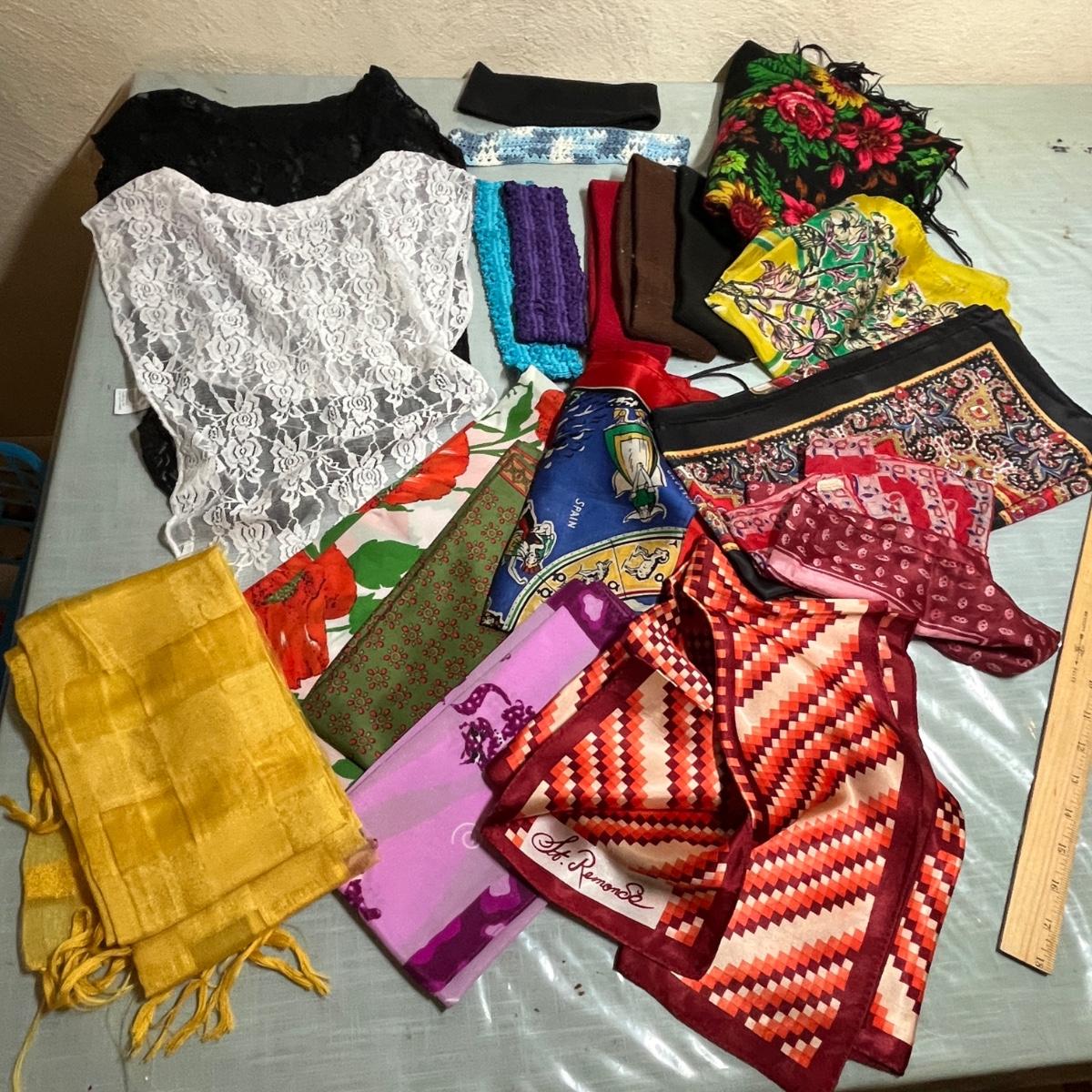 8. Sizes are approximate, you can estimate as our lot number signs are 3.5" long. Also we use an 18" & 36" measuring stick.  We try on certain things to do actual measurements. No guarantees on actual sizes, we try our best!