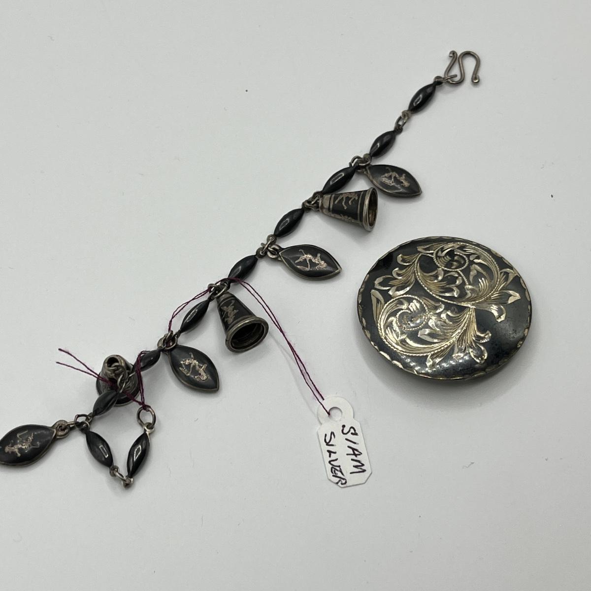 The bracelet is Siam, bells ring! The brooch is Taxco. 24.6 grams total weight.