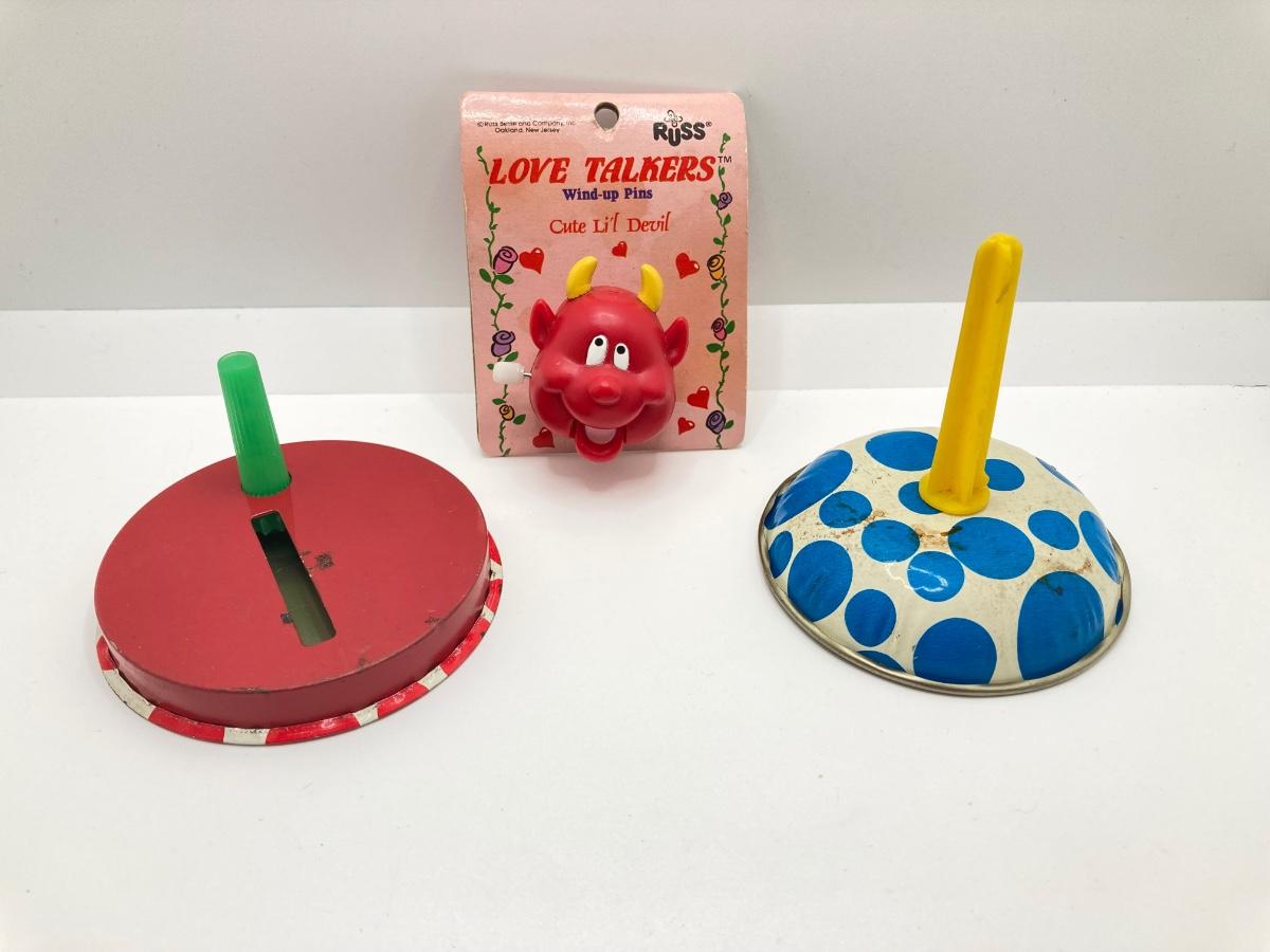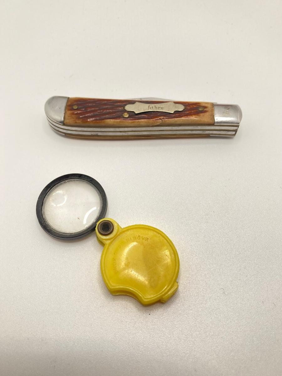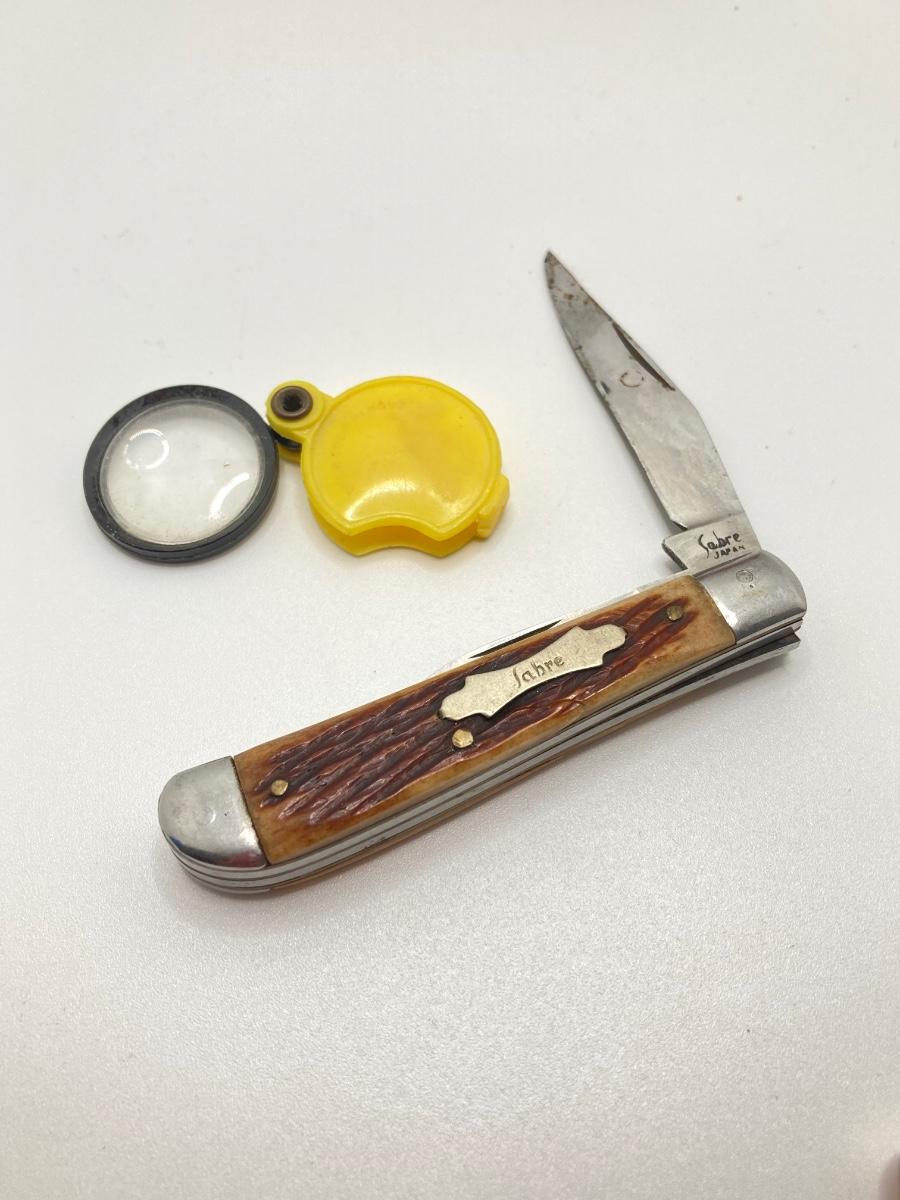 Lot 502: Vintage Toys / Noise Makers, Animal Figurines (Metal and Plastic), Sabre Pocket Knife and More