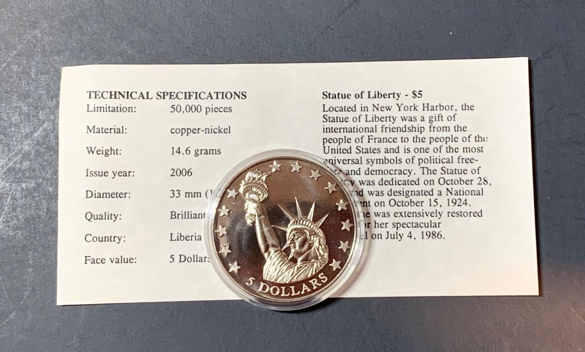 Collectible Statue of Liberty Coin, copper-nickel with a face value of $5.00