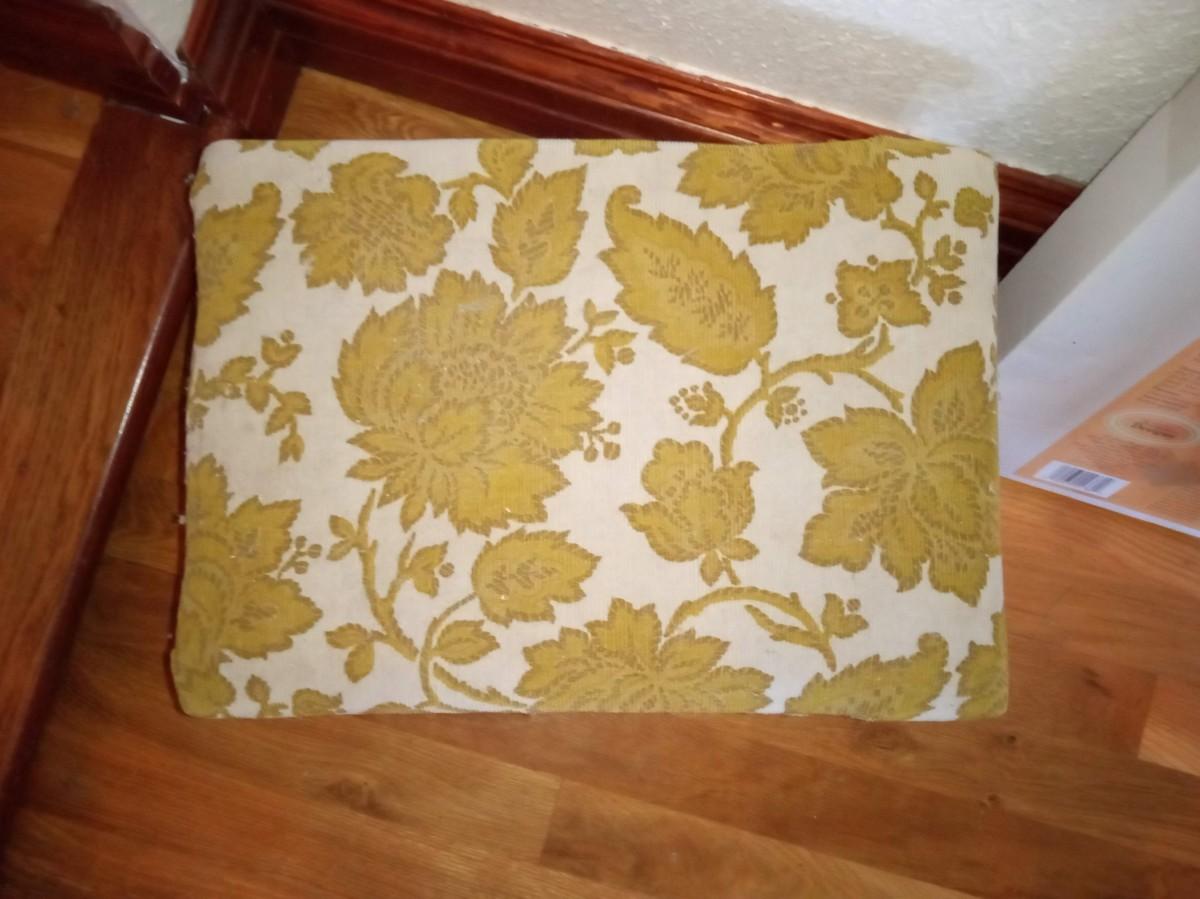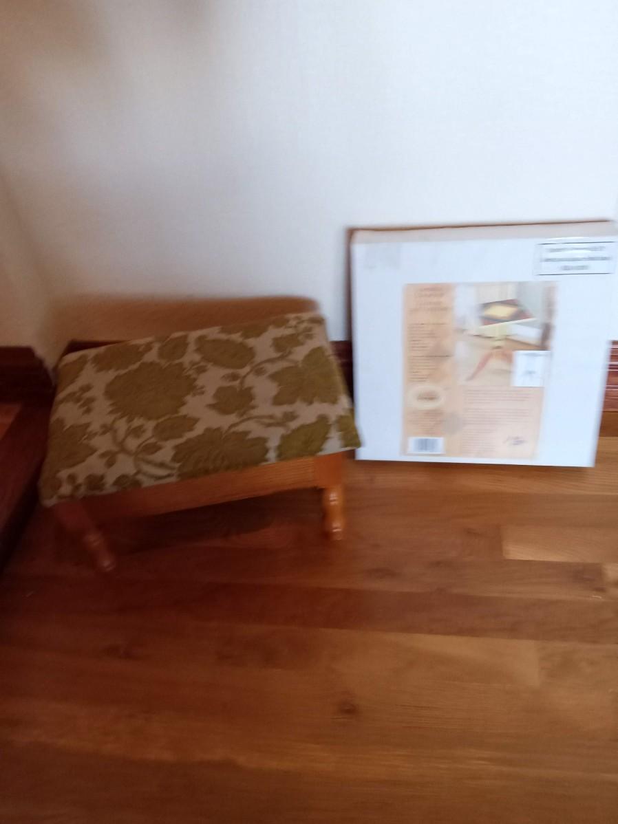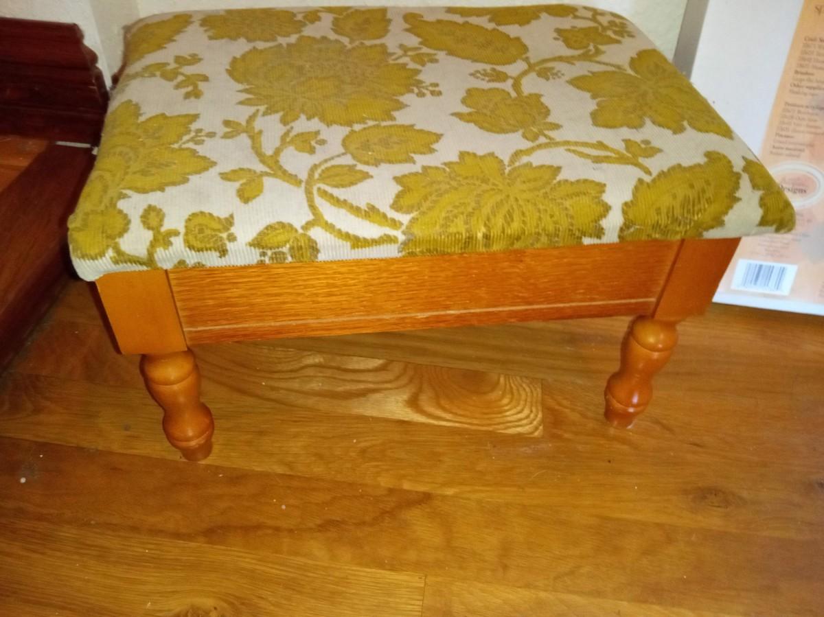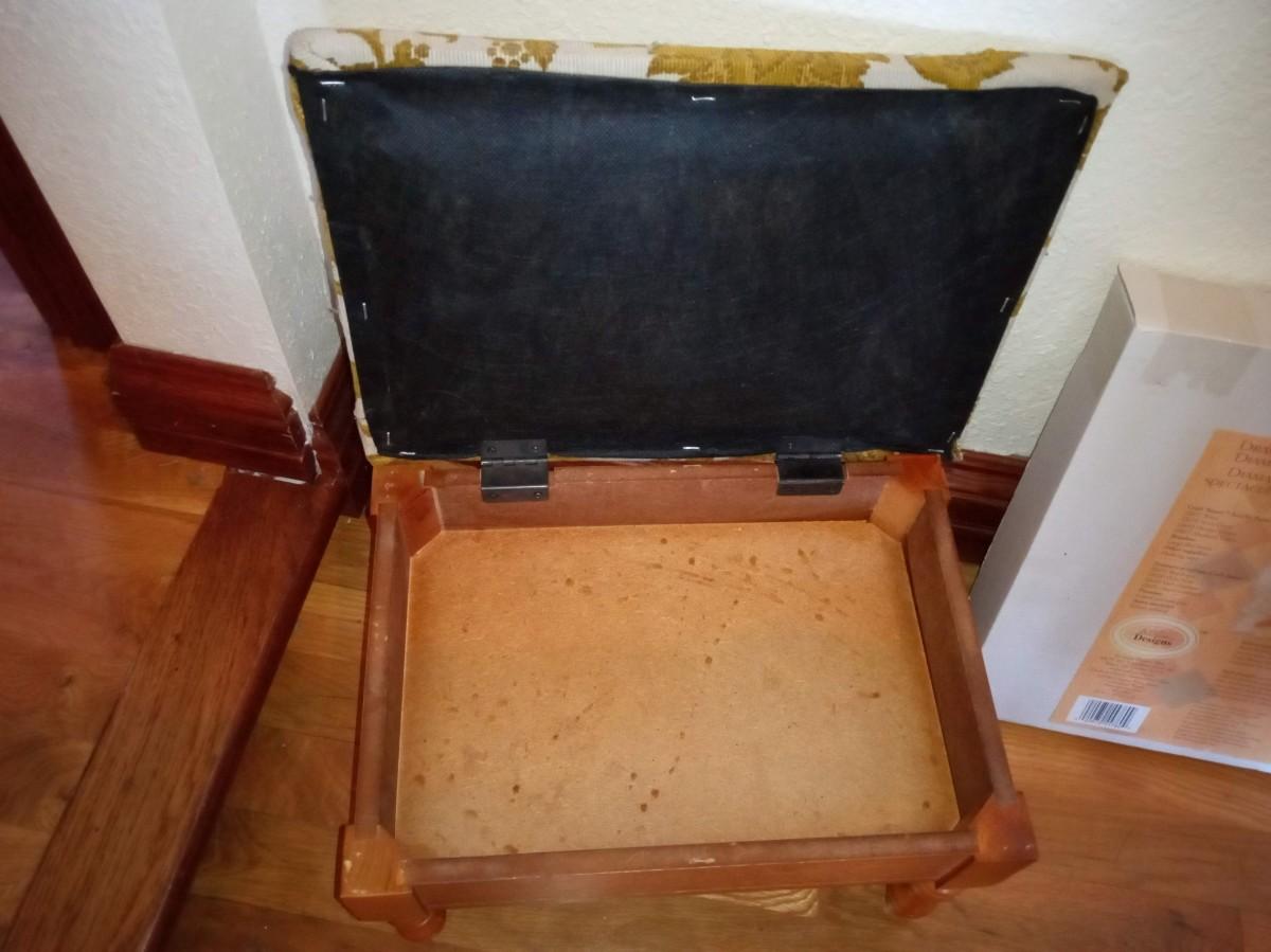 THE FOOT STOOL HAS A HINGED LID AND STORAGE