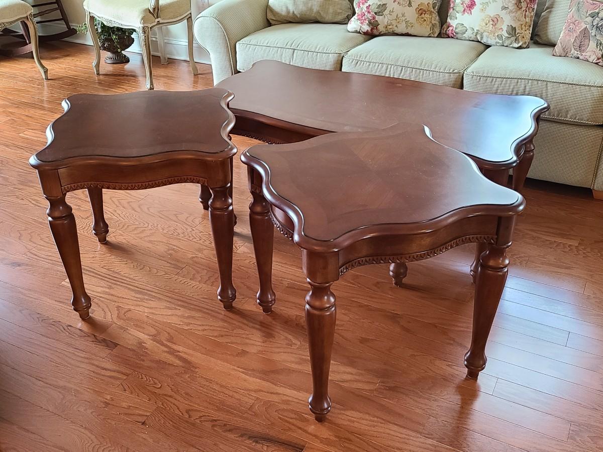 Lot 502: Ashley Furniture Cherry Finish Coffee Endtables Set
