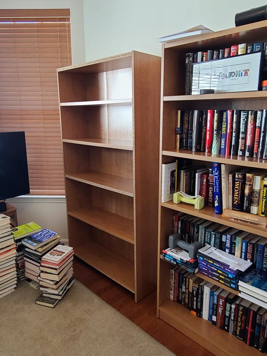 This is a very nice bookshelf, but it will need to be reassembled. Books not included. The client accidentally put together wrong and did not notice until they were done. 38x13x71 inches tall. Located on the first floor. Please see all pictures as they are the best representation of the items. The pictures show condition, measurements if taken, and what is included in the lot. Due to the large amount that we photograph and the time frame, we are not always able to take measurements. All items unless noted, are pre-owned and have been used. If you purchased furniture, you must bring help. We do not allow one person to carry large furniture out on their own. Bring help, tools and a truck for the safety of our client’s homes, and your personal safety. Any damages that result to the property including walls, and floors due to moving of the furniture will be charged to the buyer. Company policy. Thank you.