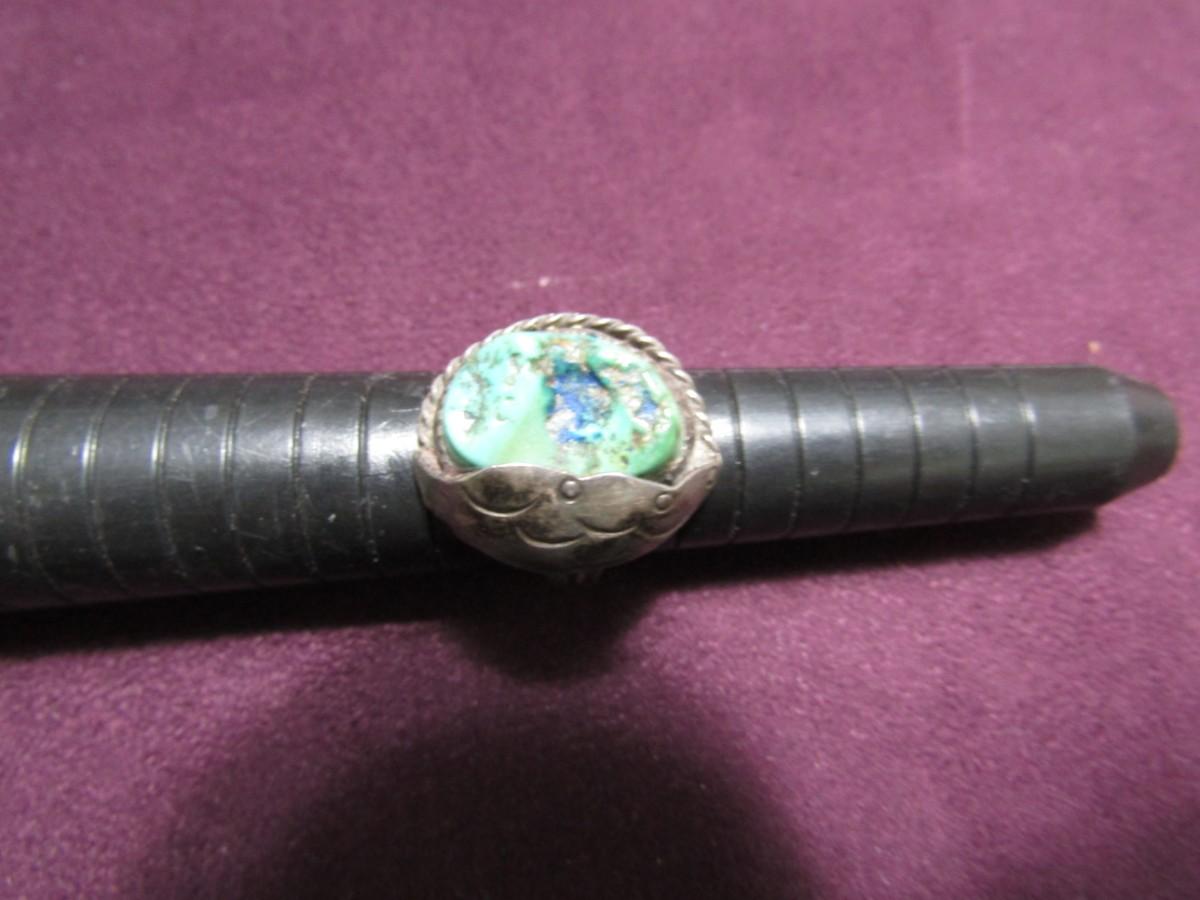 LOT 502 NATIVE AM TURQUOISE & STERLING RING