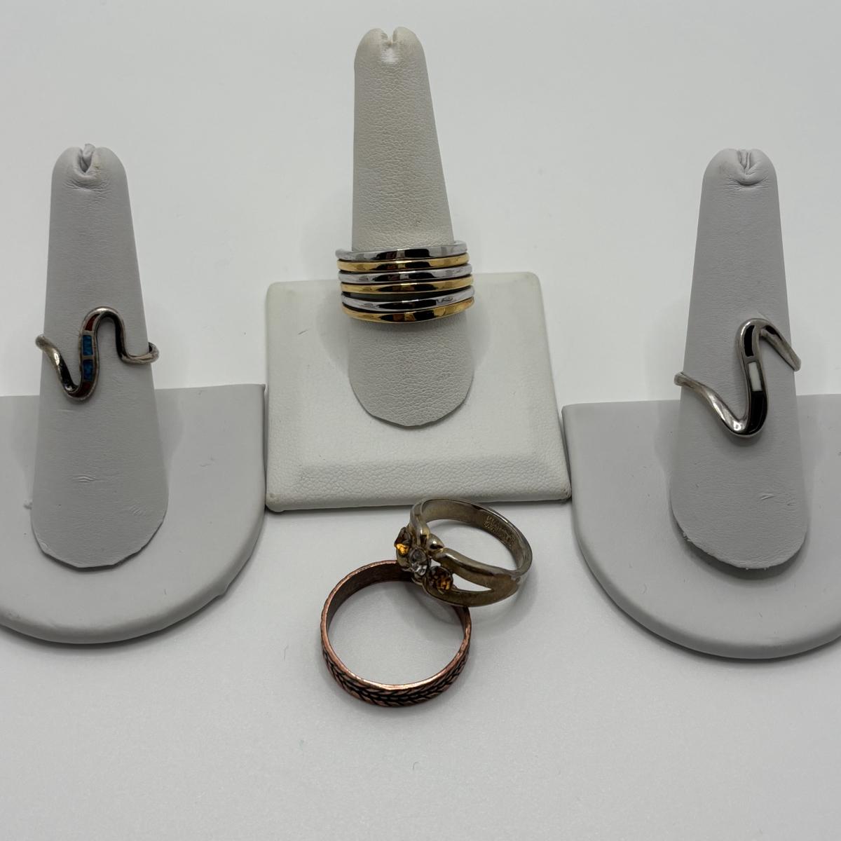 Lot 503: Collection of 5 Rings: Sterling, Copper, Electro Plate