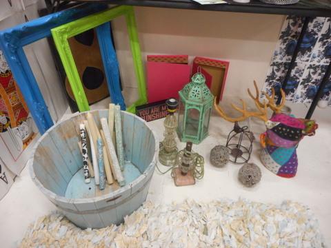 Lot 503 - Wooden Tub, Birdhouses, Frames, Rug, Outdoor Garden Items