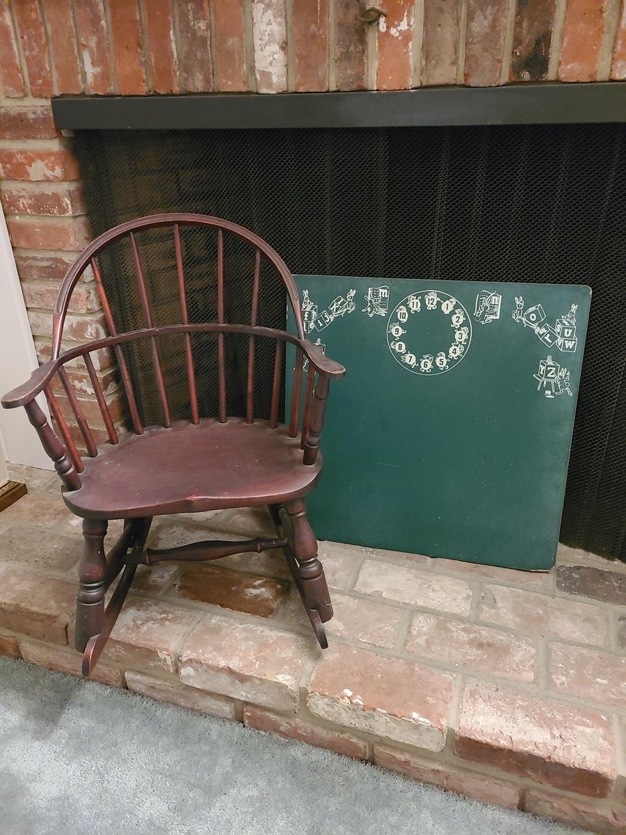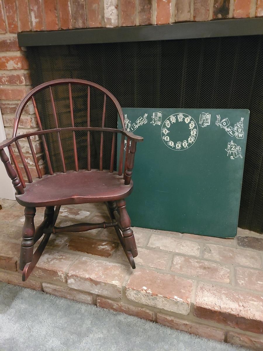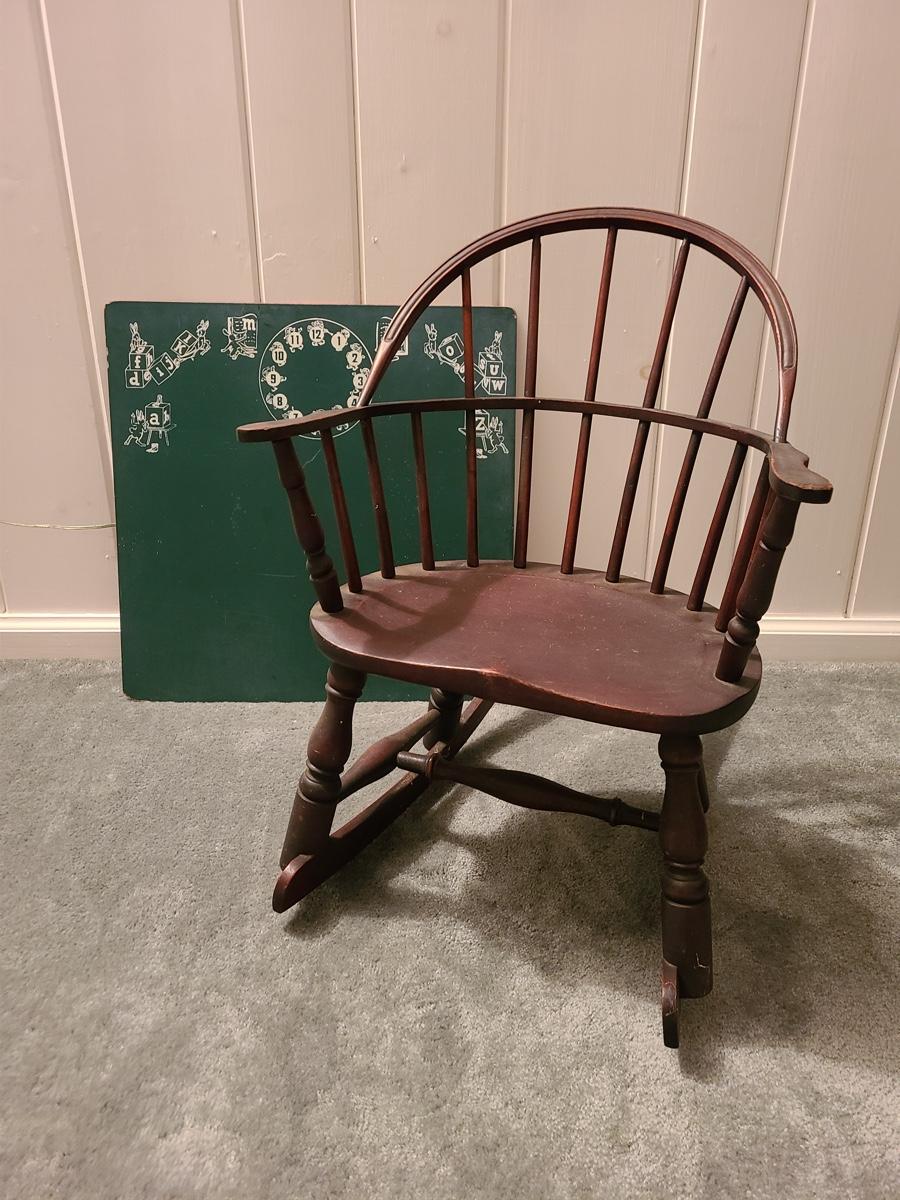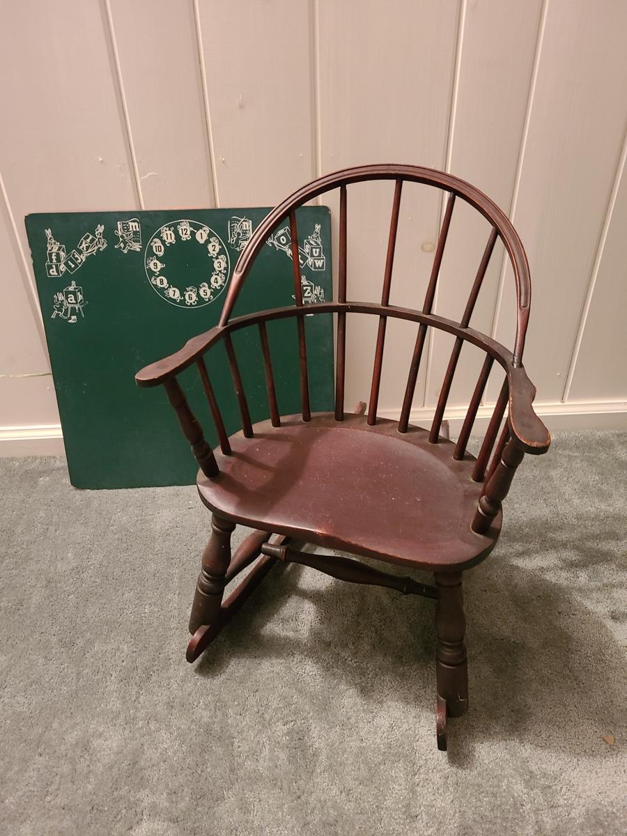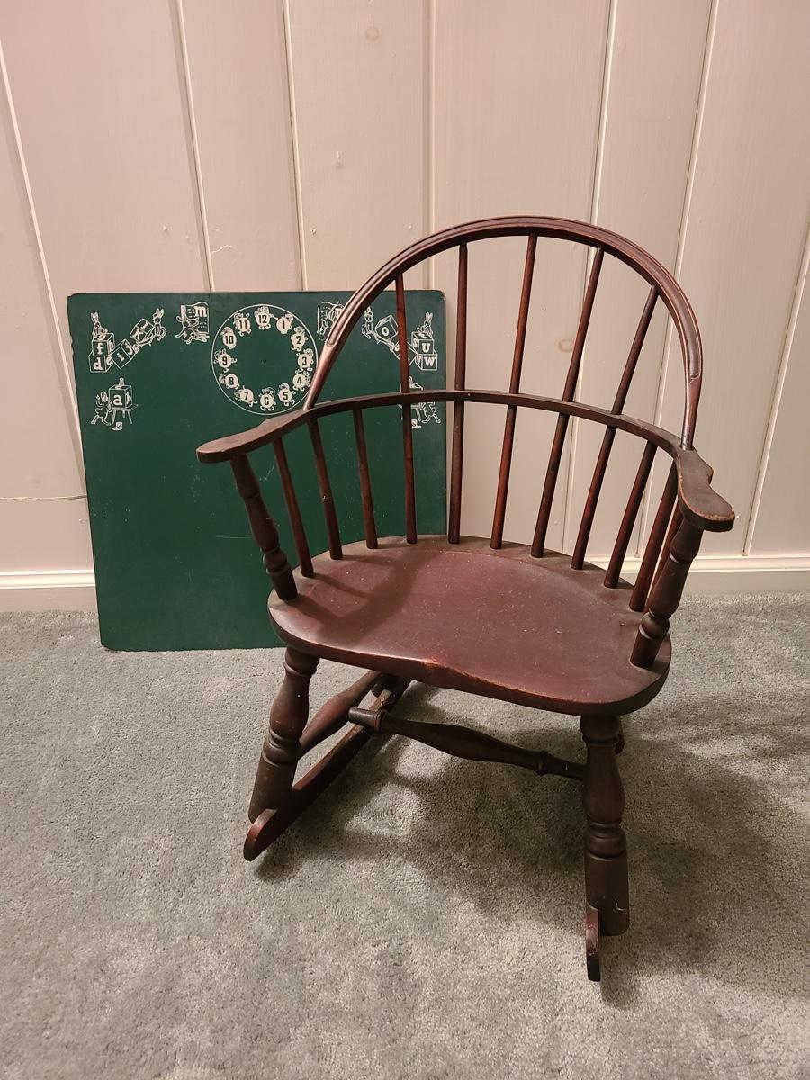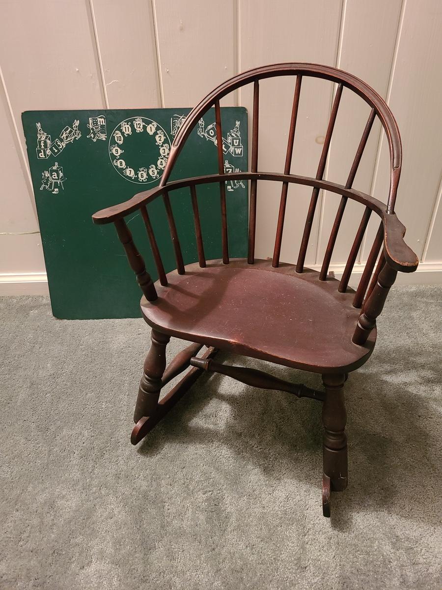 Lot 503L: Vintage Childs Rocking Chair and Chalk Board