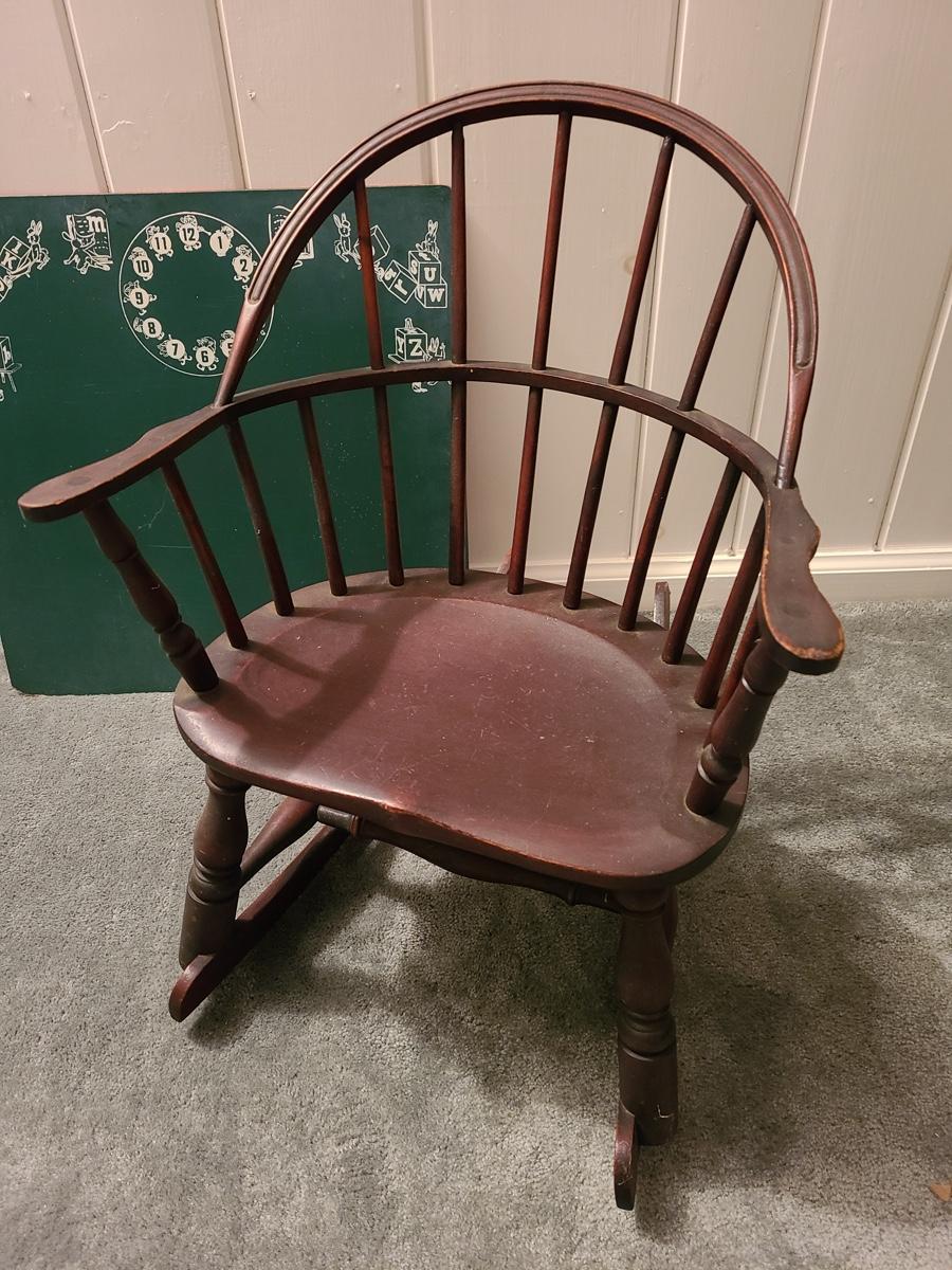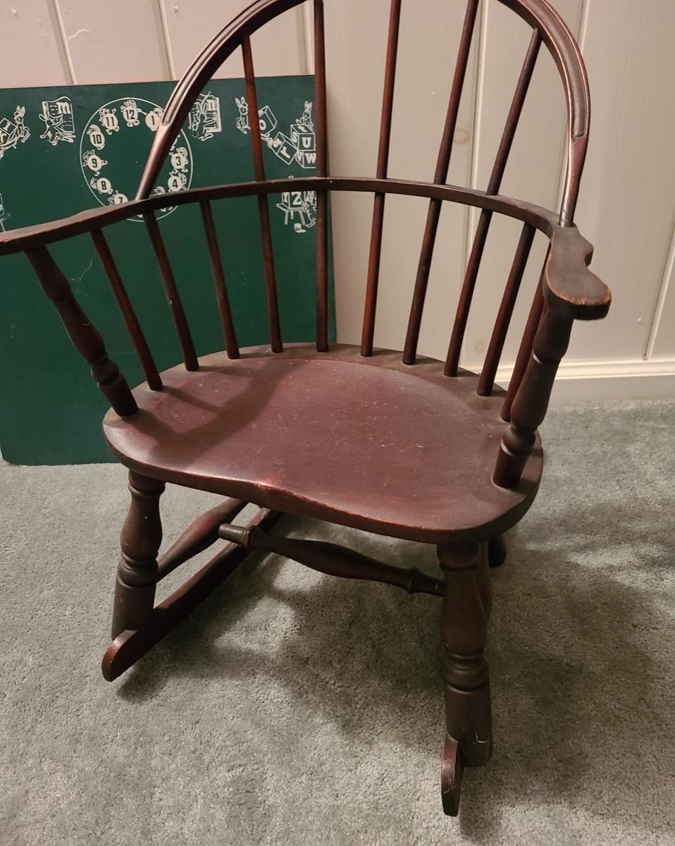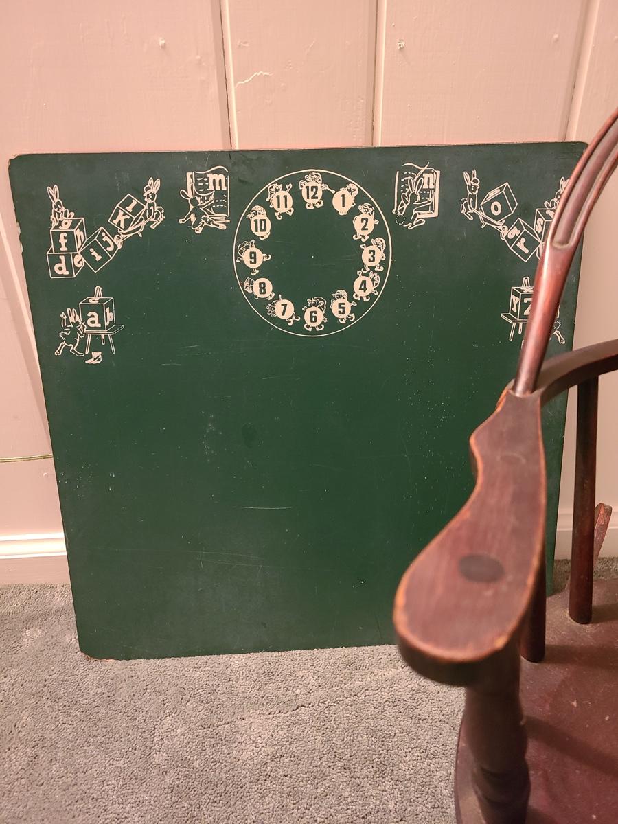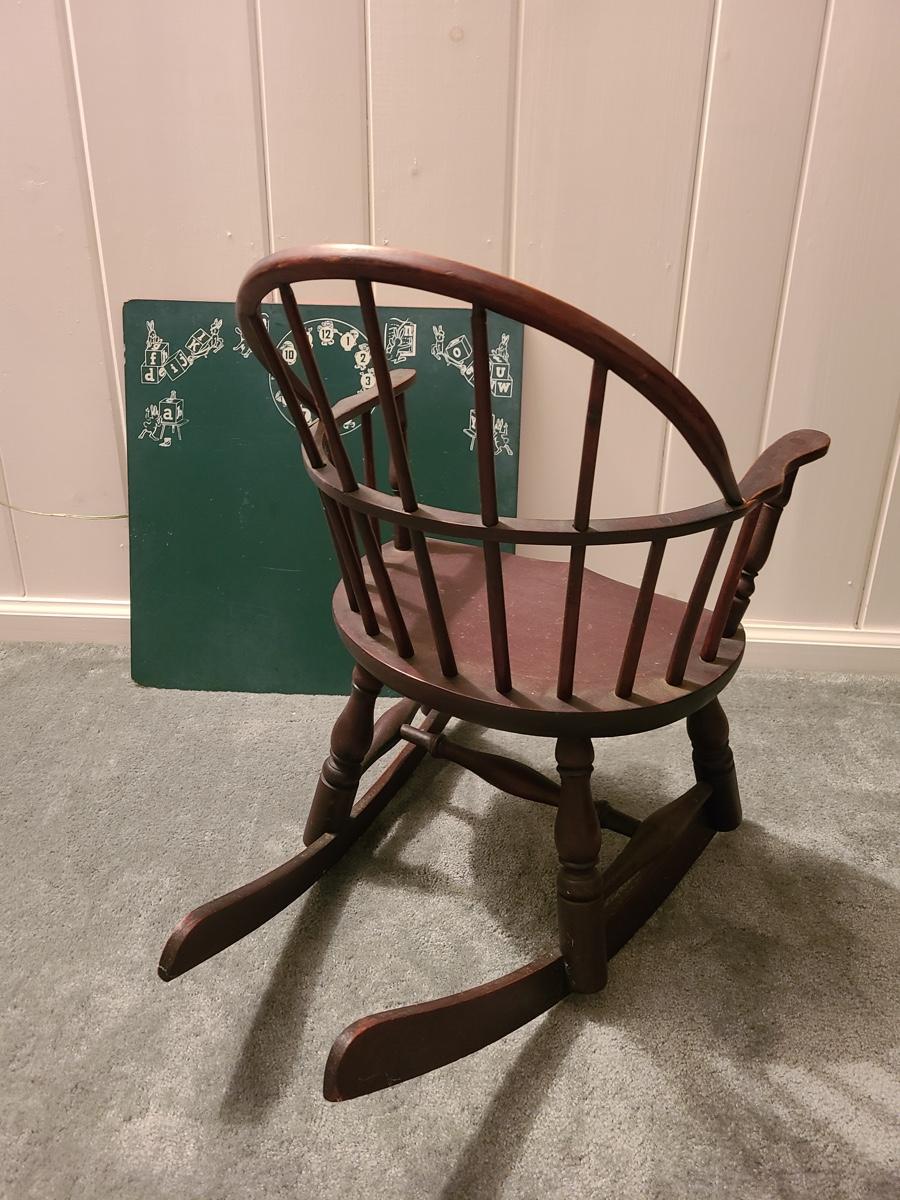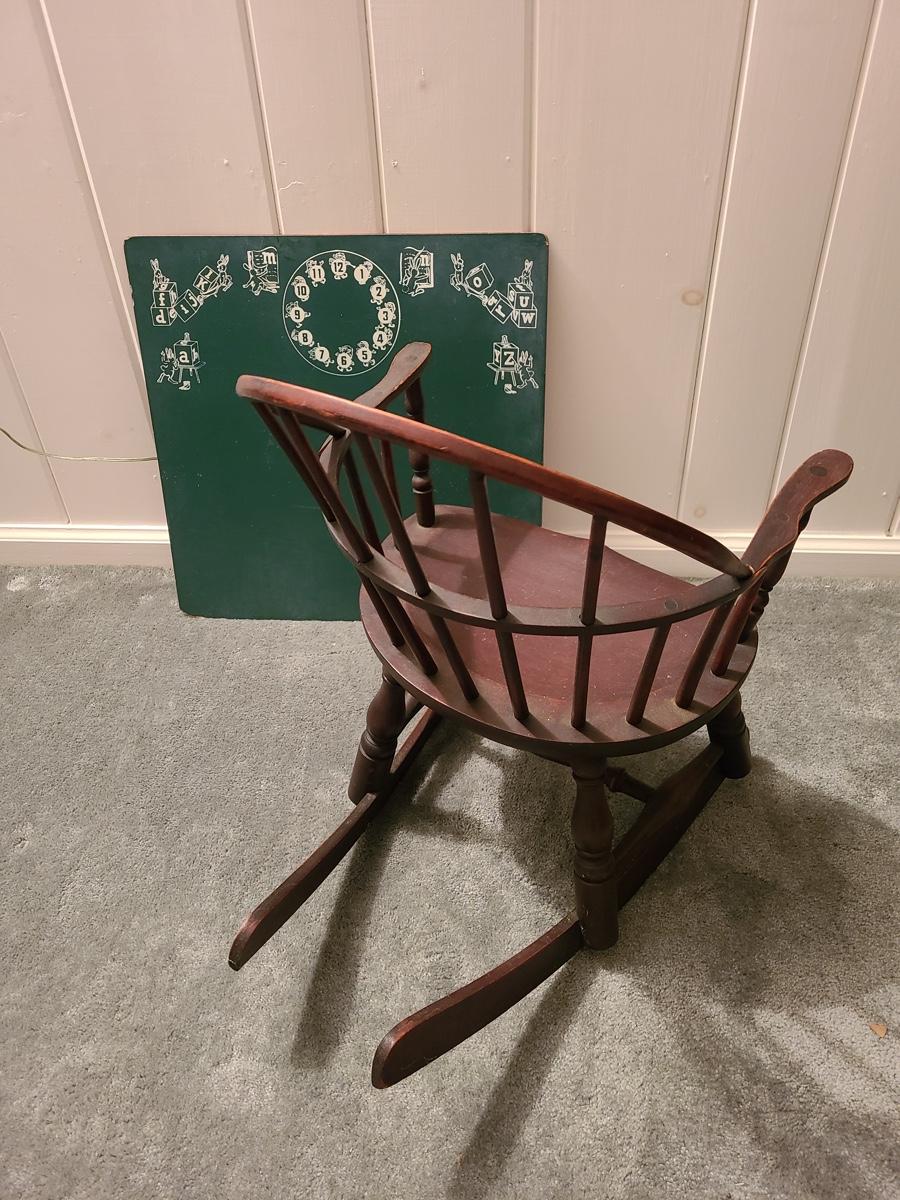 Lot 503L: Vintage Childs Rocking Chair and Chalk Board