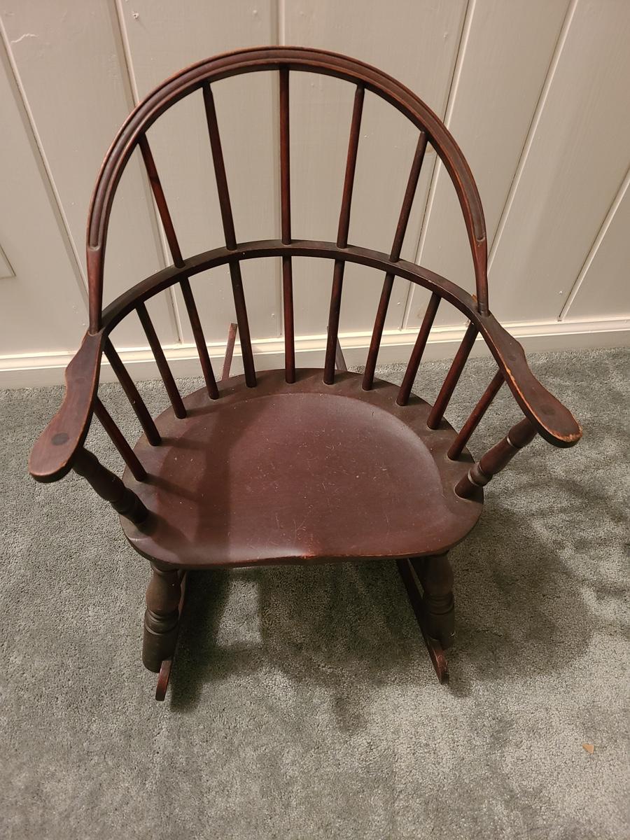 Chair is solid and functional. Great as decor or gift for child. Please see all pictures as they are the best representation of the items. The pictures show condition, measurements if taken, and what is included in the lot. Due to the large amount that we photograph and the time frame, we are not always able to take measurements. All items unless noted, are pre-owned and have been used. If you purchased furniture, you must bring help. We do not allow one person to carry large furniture out on their own. Bring help, tools and a truck for the safety of our client’s homes, and your personal safety. Company policy. Thank you.