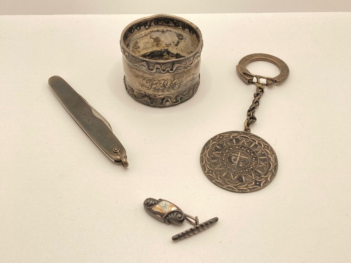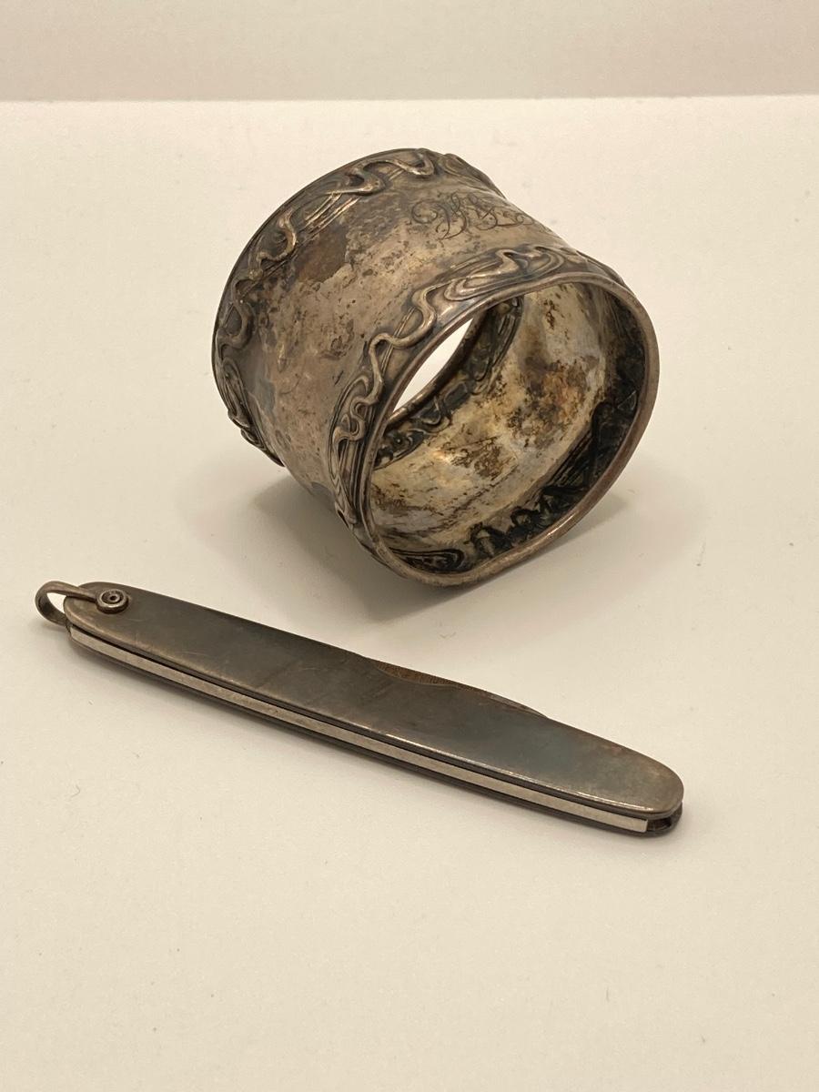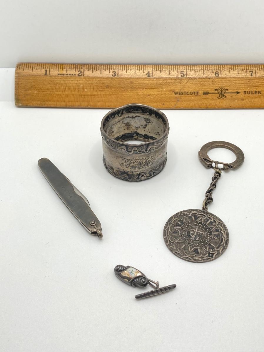 Lot 504: Sterling Collection - Pocket Knife, Napkin Holder, Key Chain and More