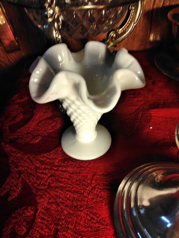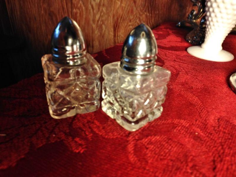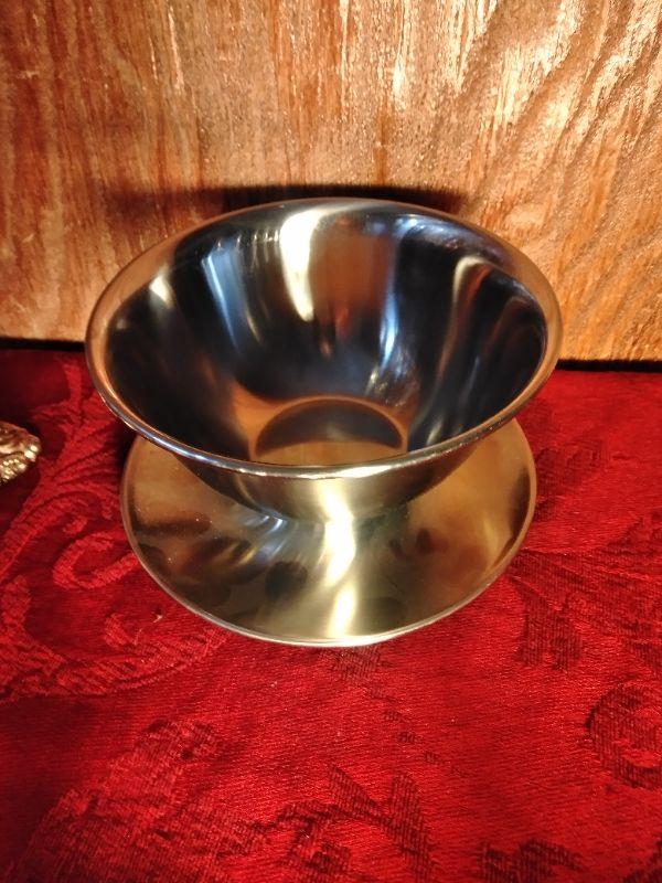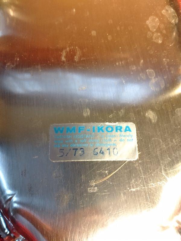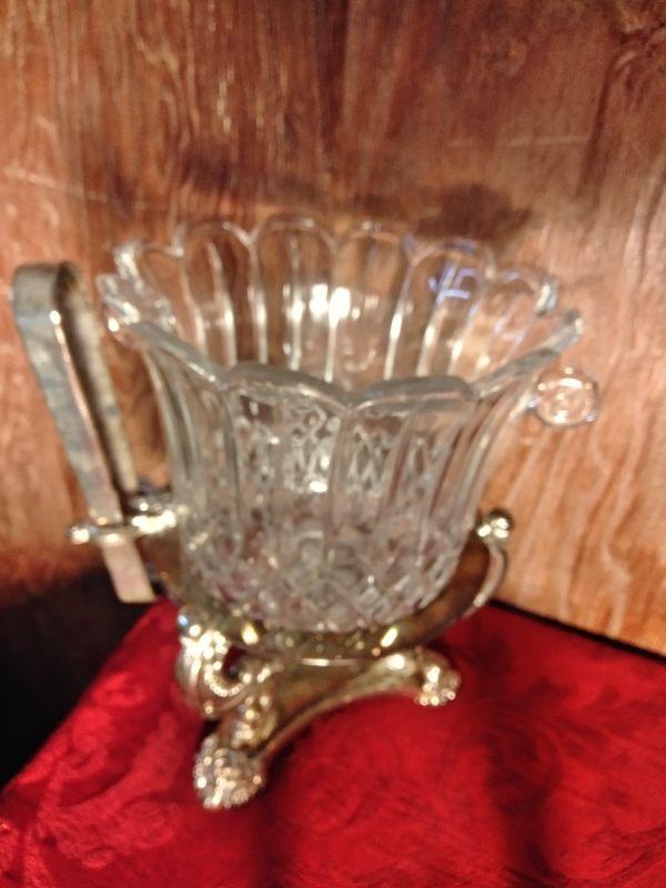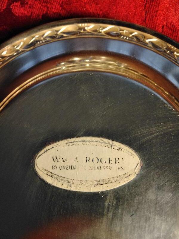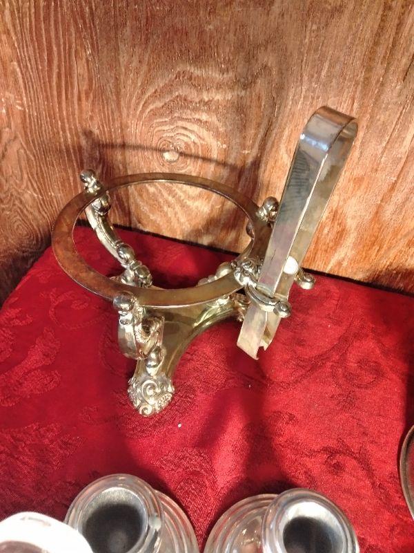 GODINGER ICE BUCKET WITH TONGS AND REMOVABLE GLASS BUCKET, ONEIDA BOWL WITH ATTACHED SAUCER, WMF- KORA MARKED OVAL TRAY, SMALL W.M. ROGERS MARKED DISH, TWO PEWTER CANDLE STICK HOLDERS, GLASS SALT AND PEPPER SHAKERS, AND MILK GLASS VASE.