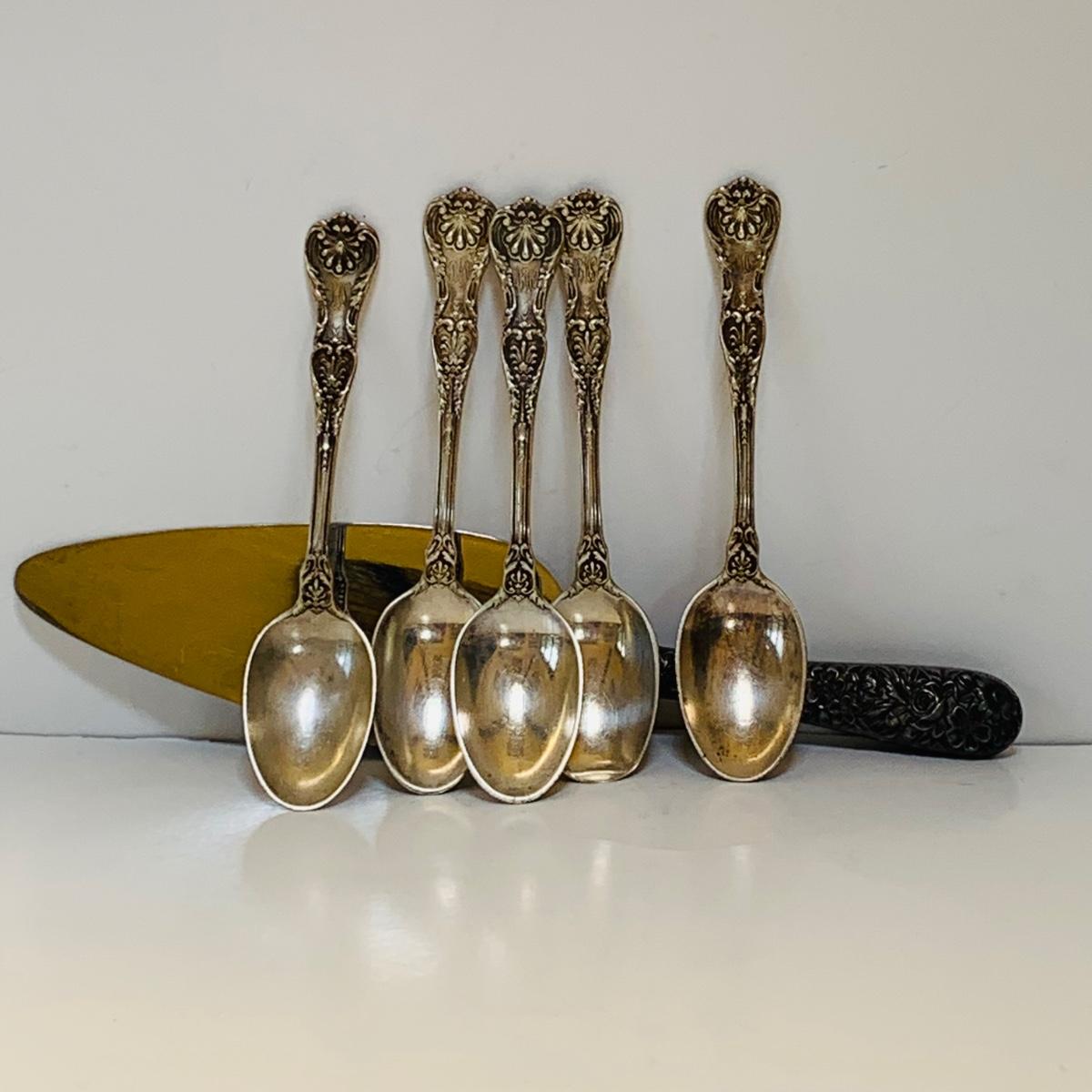 Total weight for spoons: 187.5gr Cake Server not weighted however it does have a sterling silver handle.