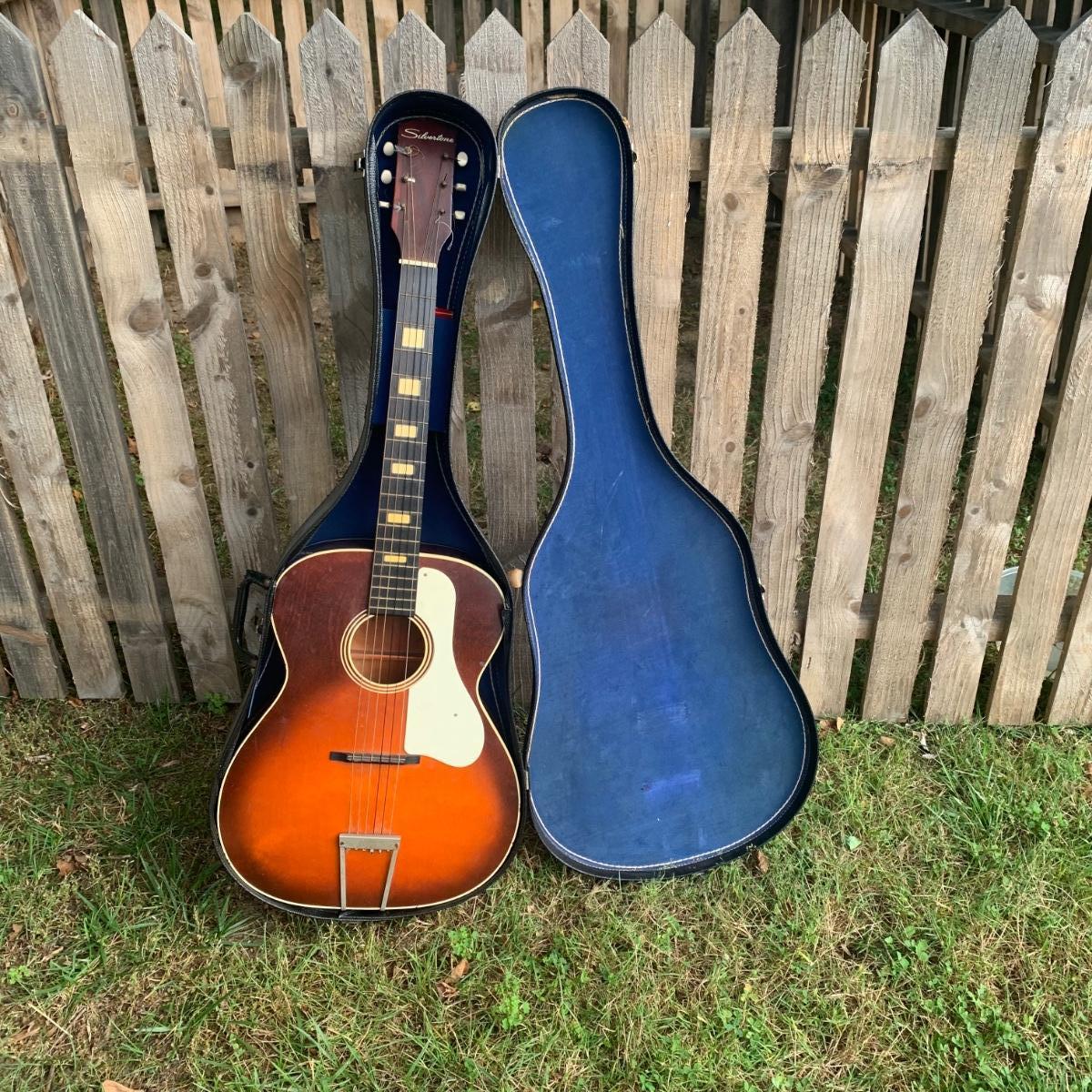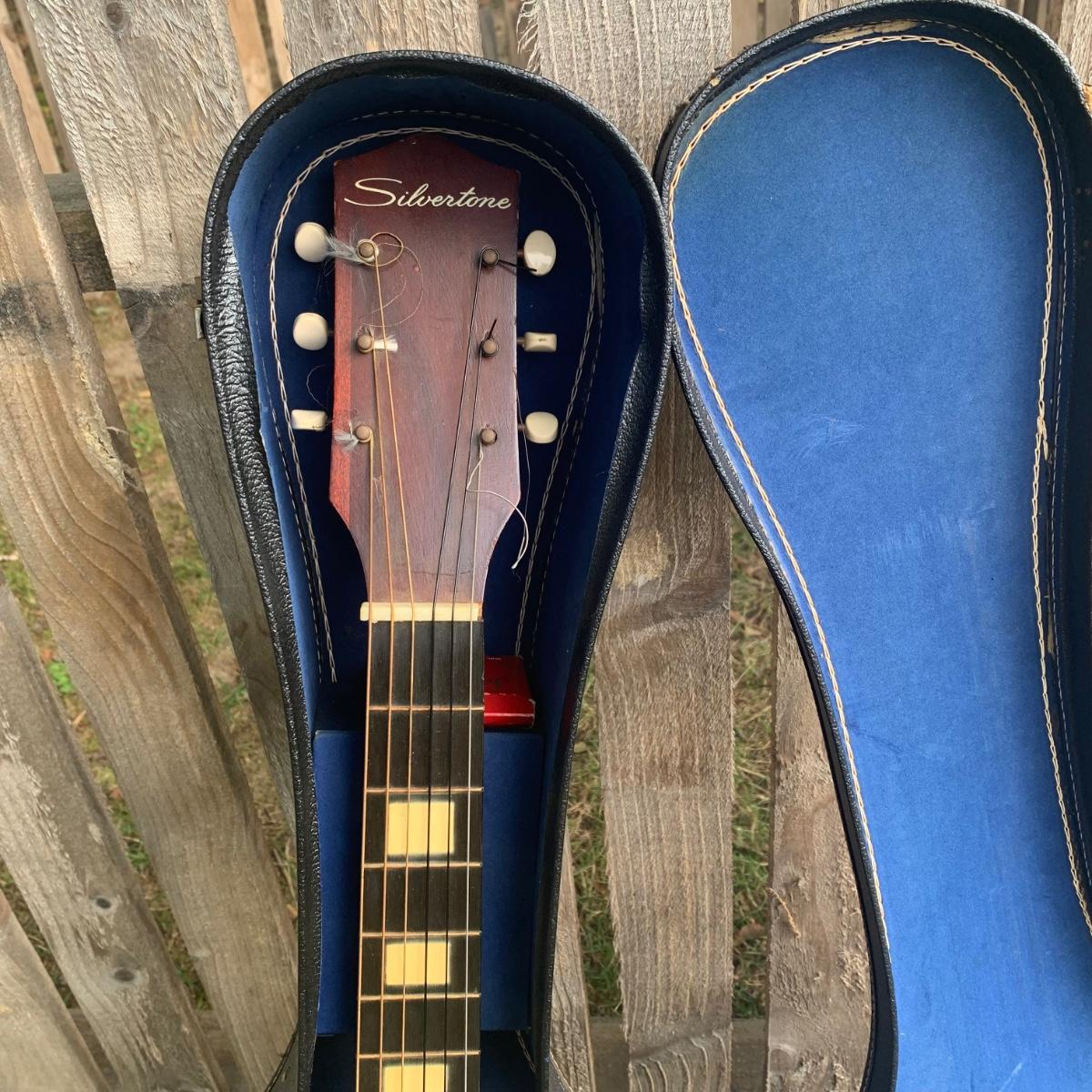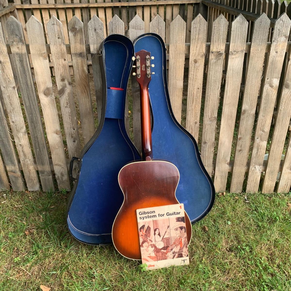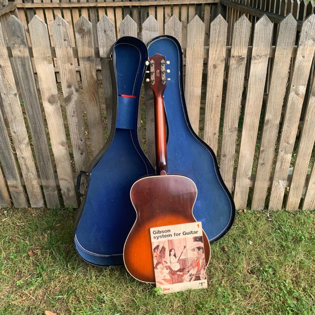 Lot 504: Vintage Silvertone Acoustic Guitar w/Case & Vintage Gibson System for Guitar Instructional Book