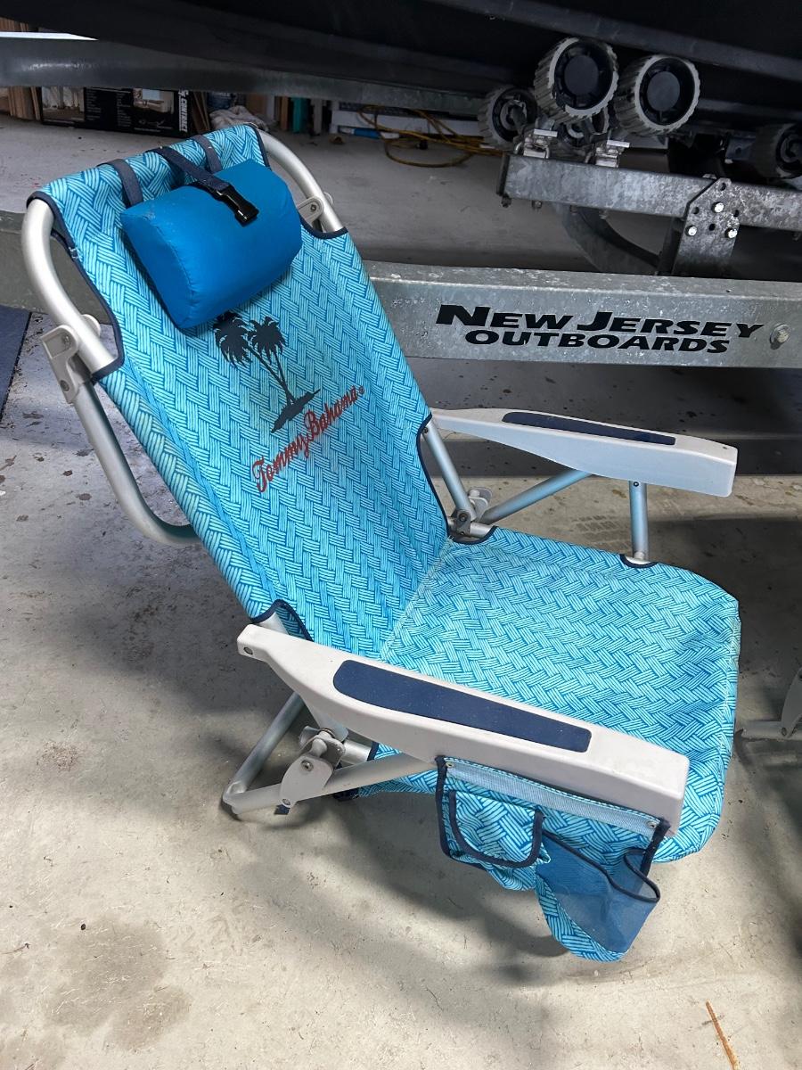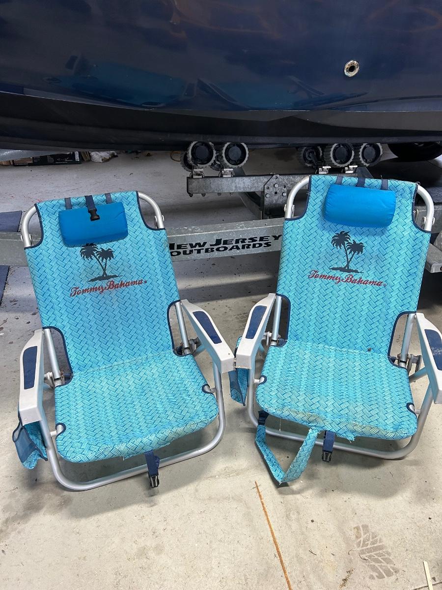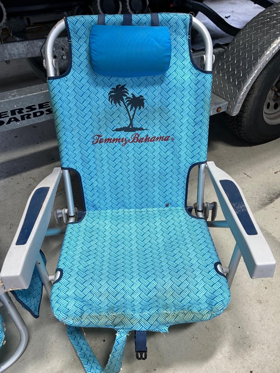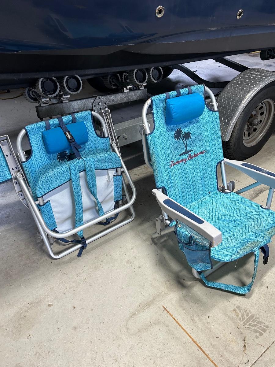 Beach Chairs snap close and can be carried on back w “backpack” straps.