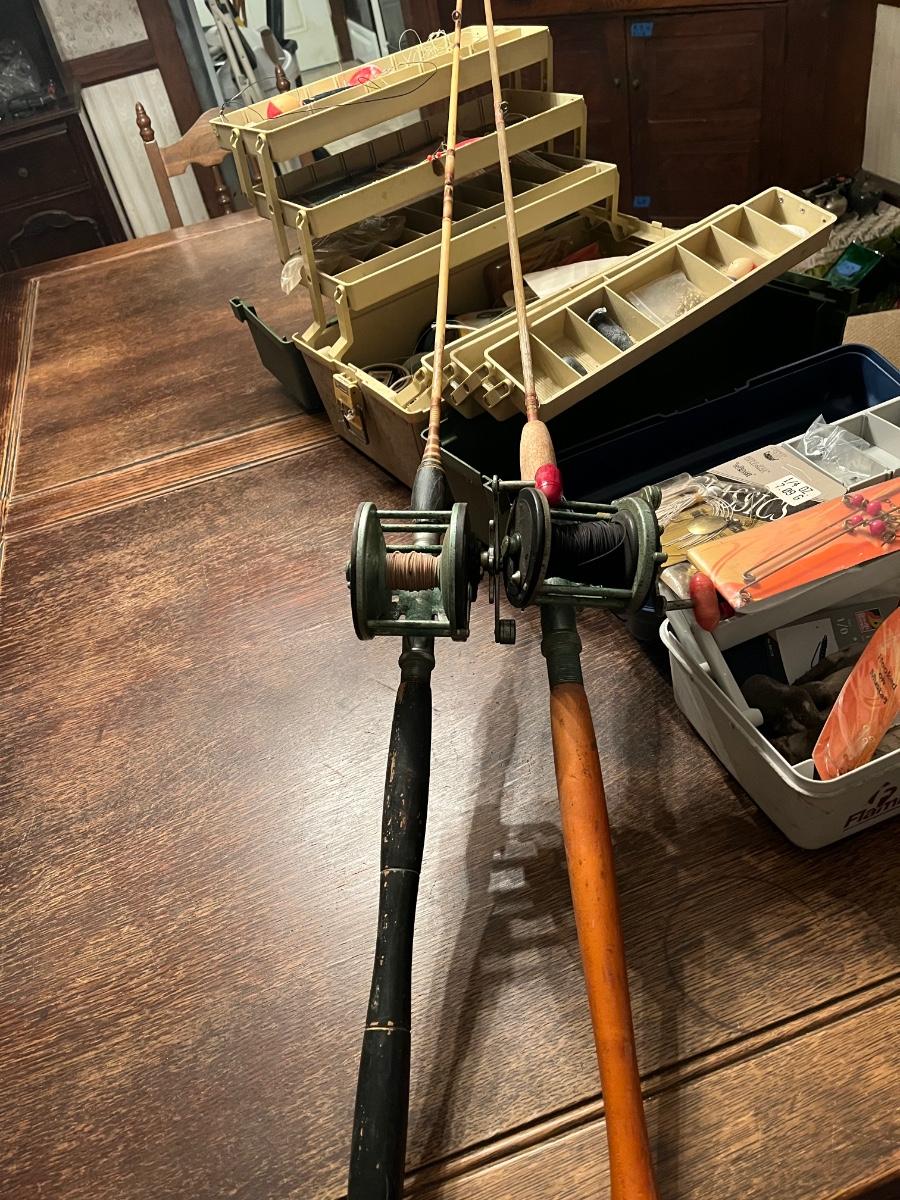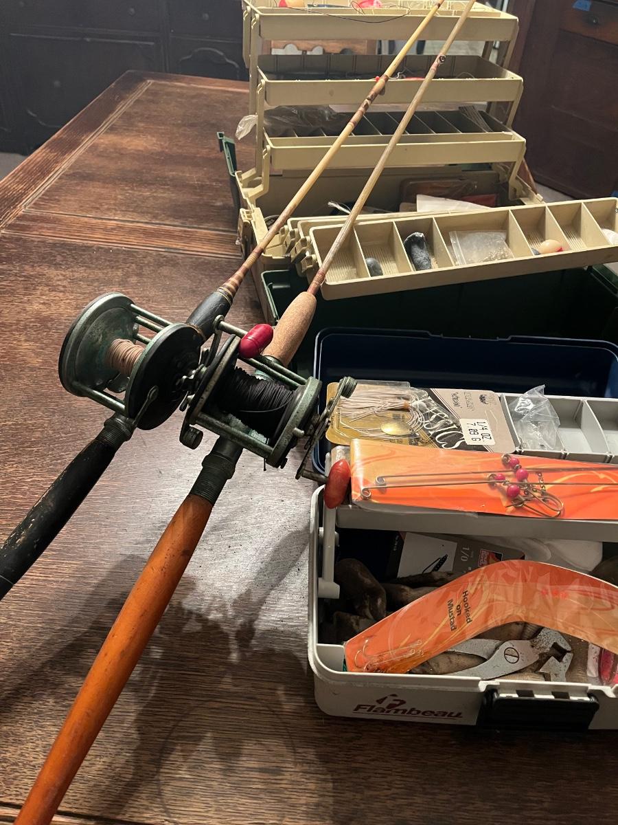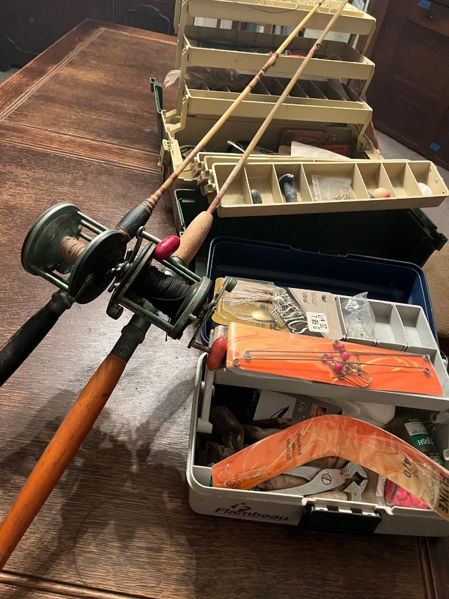 LOT 504D: Vintage Fishing - Rods Reels and Tackle / Boxes