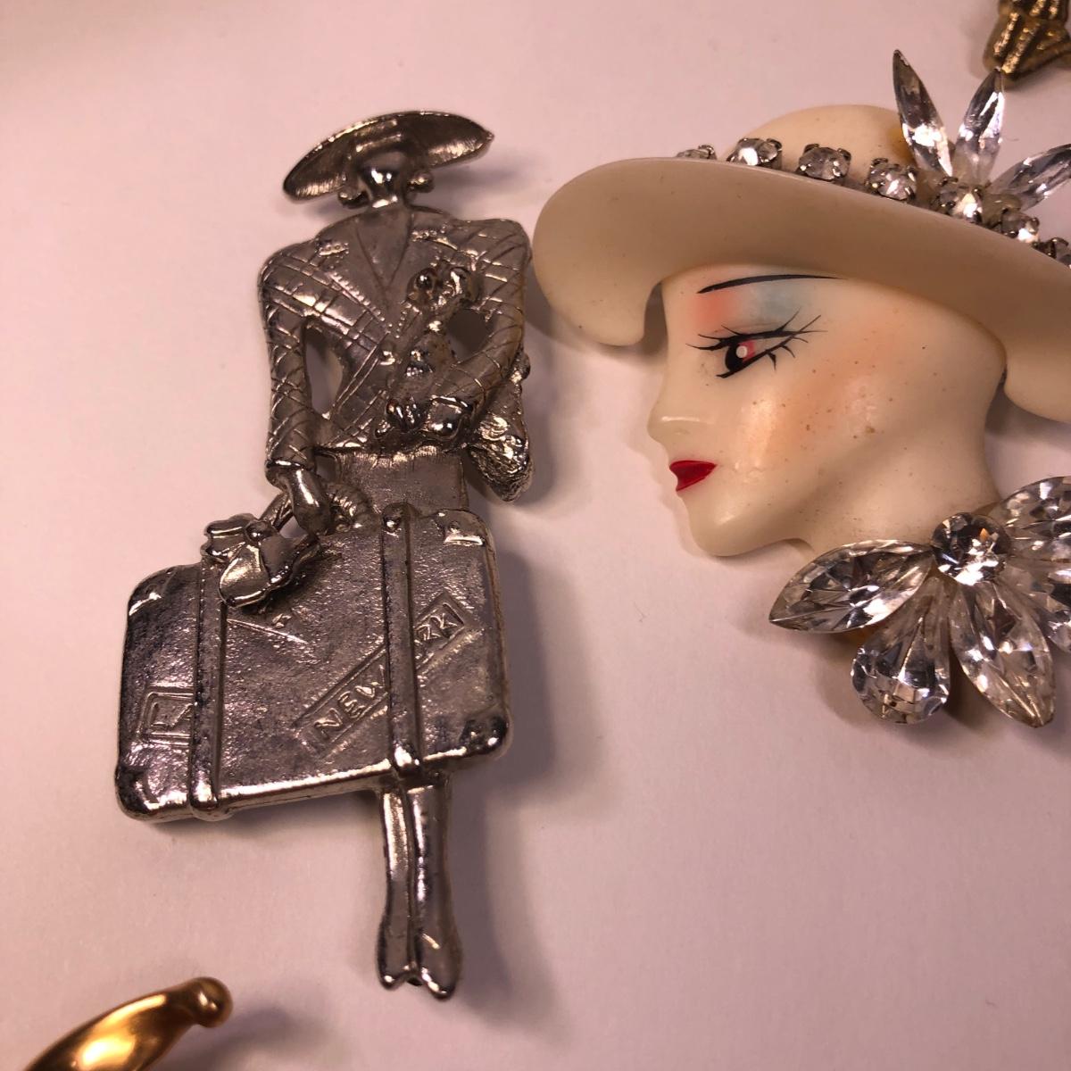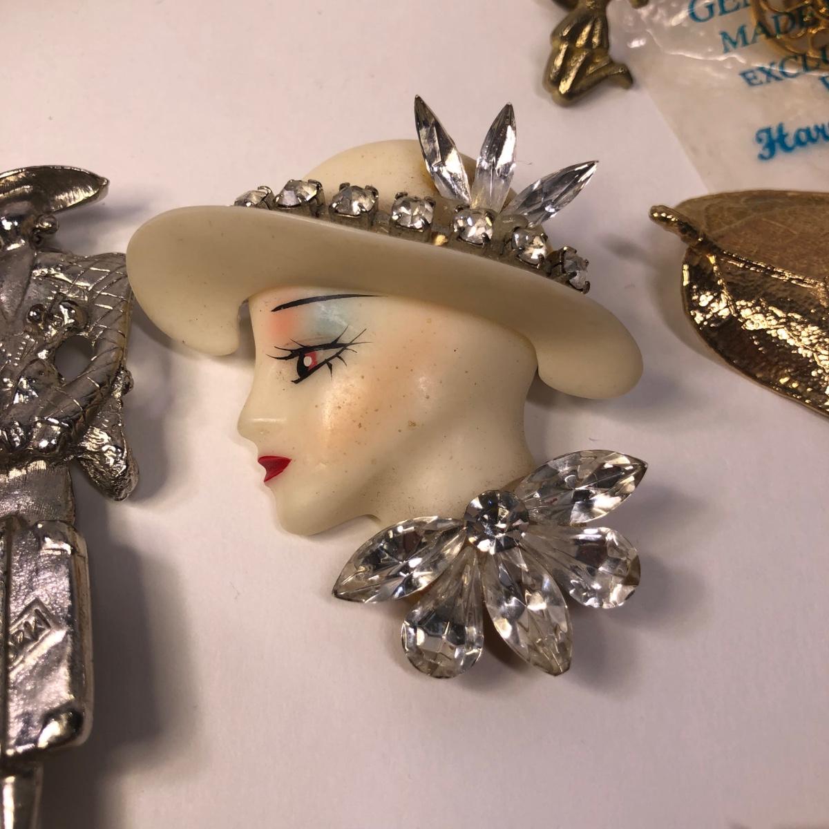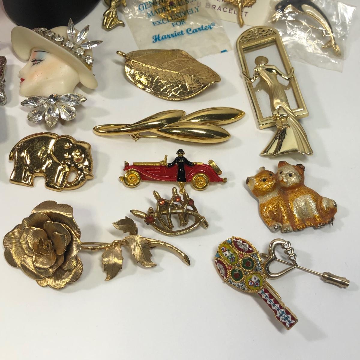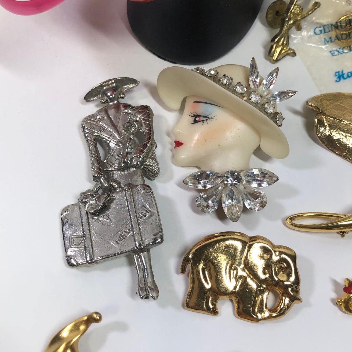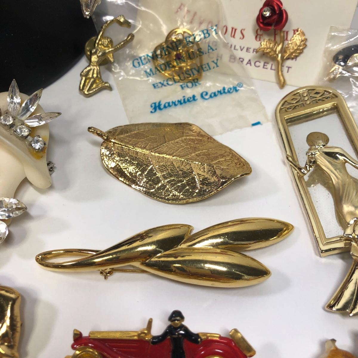 LOT 504M: Red Hat Club Bracelet & Pin, Trifari Brooch, Napier Elephant Pin, Bangle Bracelets & More
