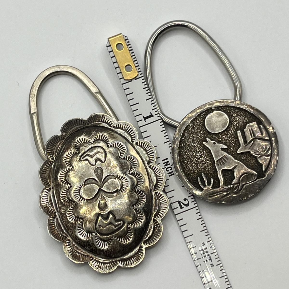 The coyote is signed Benett. The faces are sterling. 22.6 grams total weight.