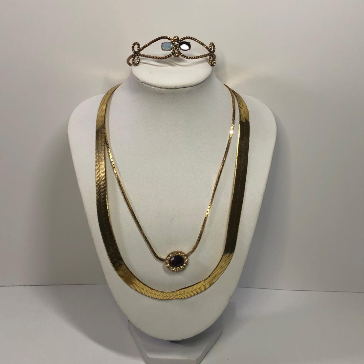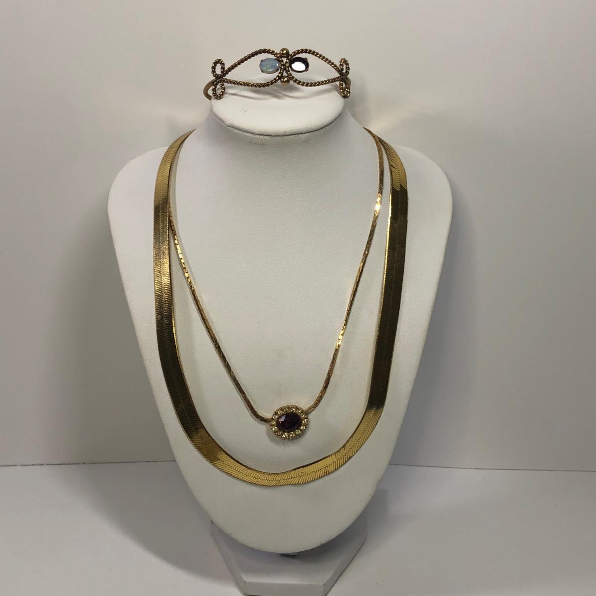 LOT 505: 12k Gold Fill Bracelet, 925 Chain w/ Gold Overlay (16”) & Christian Dior Necklace (14”)