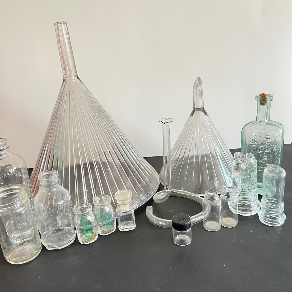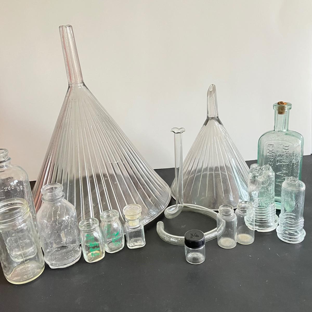 LOT 505K: Antique Whitall Tatum Company (WT CO) Glass Funnels & More
