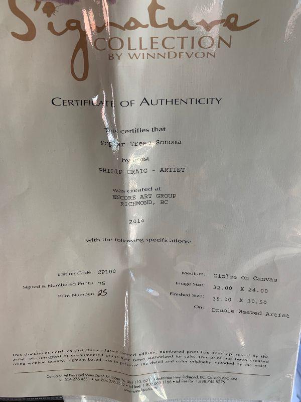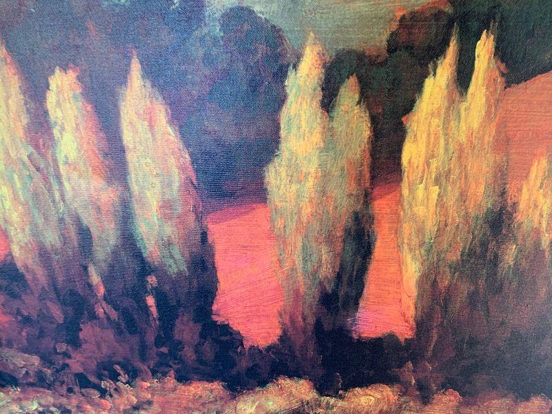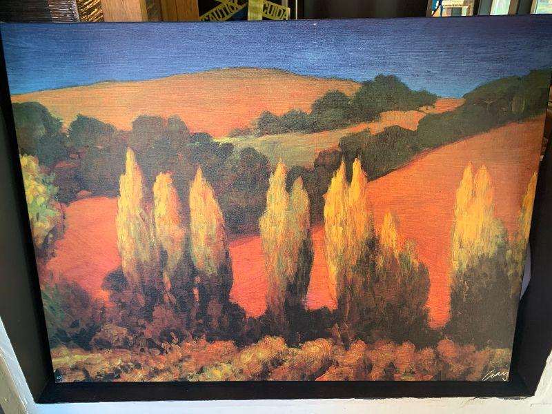 Oil on canvas tal trees poplar with red hills. Certificate of authenticity by Phillip Craig 2014