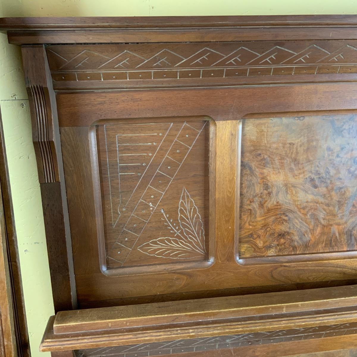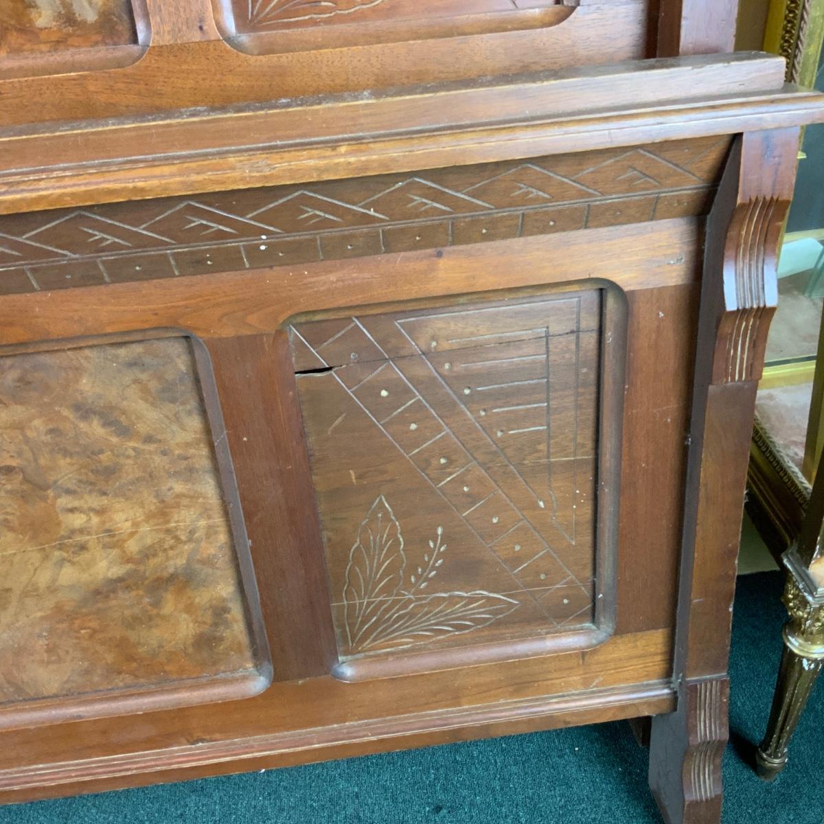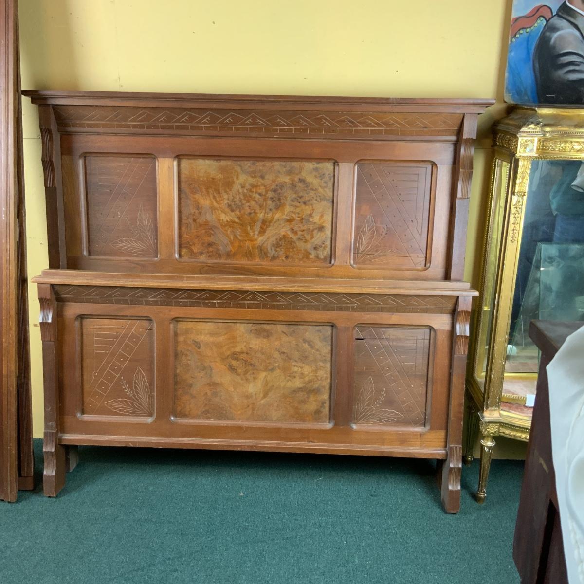 Head and footboard with Burled walnut panels. //::\\ Please see photos for details and condition. No attempt has been made to hide any imperfections. All items listed in this auction are warehouse items, and need to be cleaned. A majority of the items need restoration as well. All items are sold AS IS and WITHOUT GUARANTEE. If you are uncertain about an item, DO NOT BID. Due to the nature of this online auction in-person inspection is HIGHLY recommended. All Sales are FINAL. Pick Up Times are FIRM. Please confirm with your own schedule that you can pick up in the scheduled times listed in the Terms and Conditions. Any questions please message the auctioneer. DO NOT Contact The Harp Gallery.