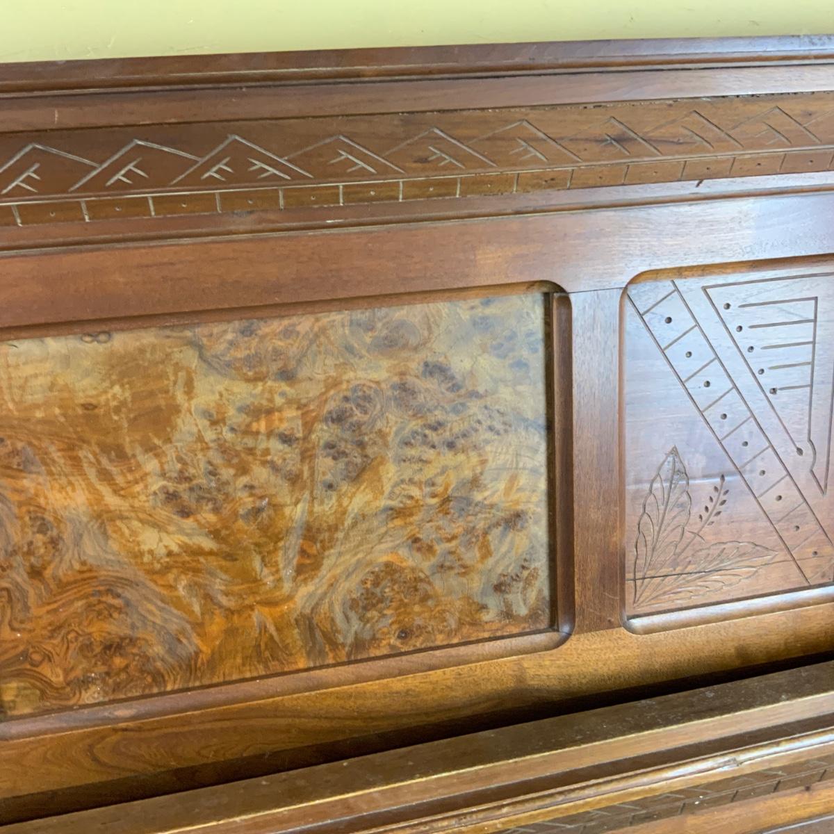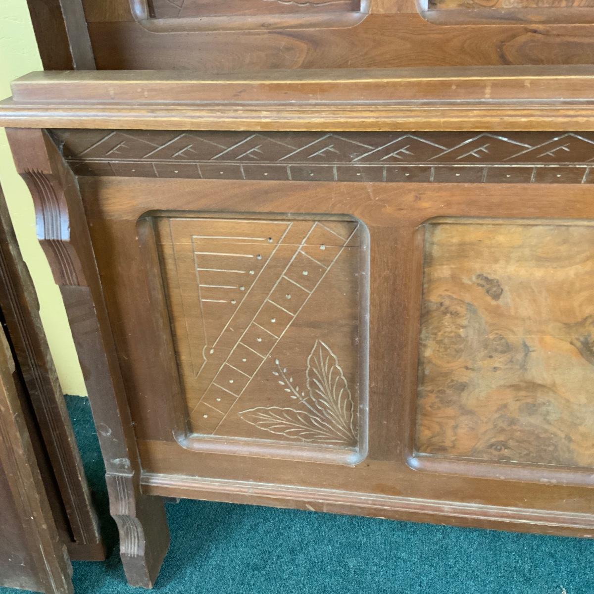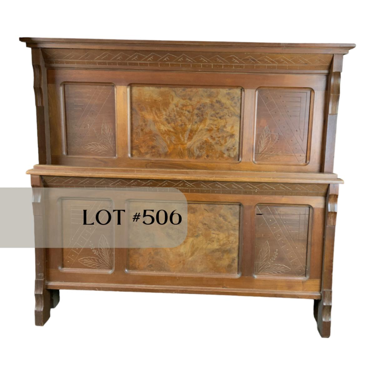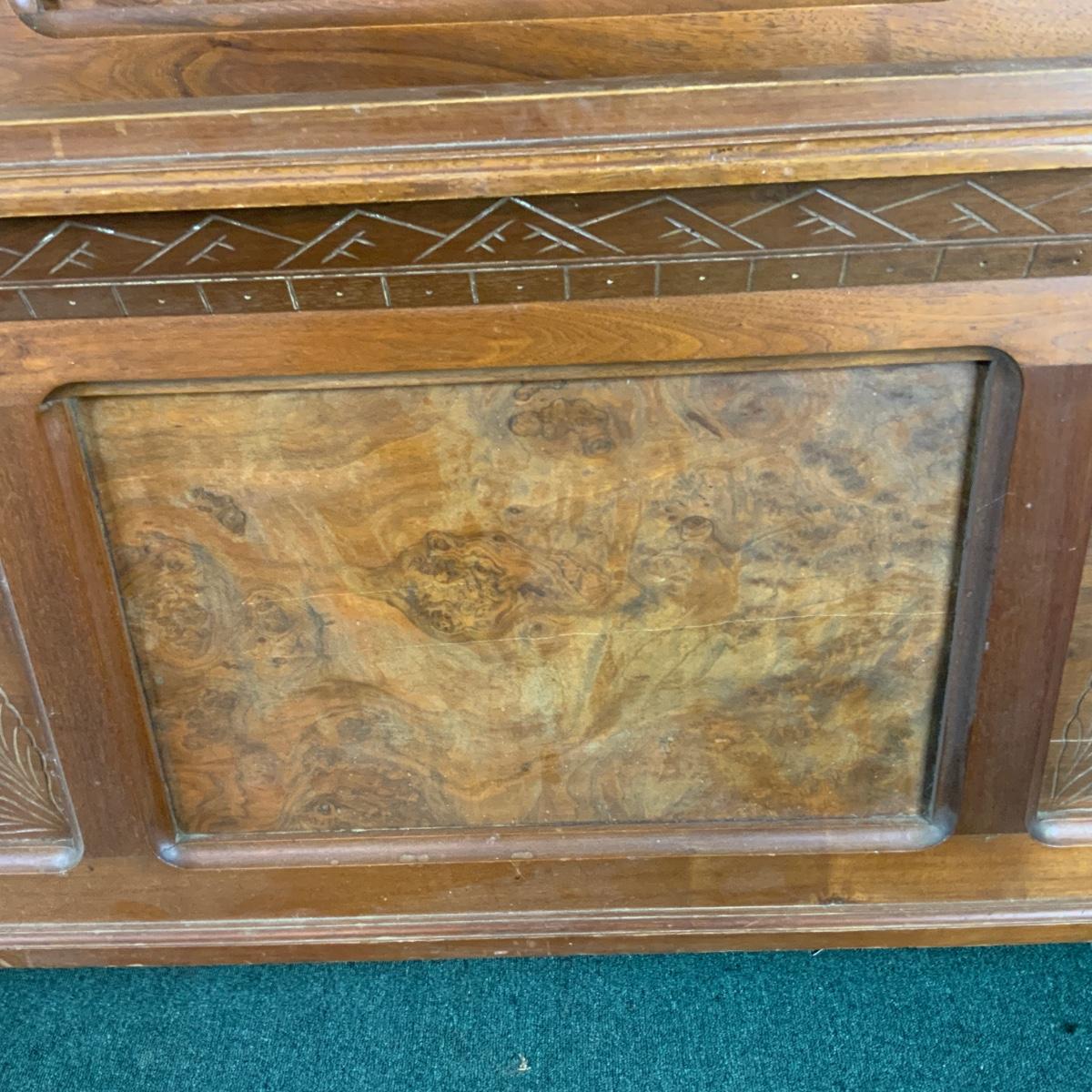 Head and footboard with Burled walnut panels. //::\\ Please see photos for details and condition. No attempt has been made to hide any imperfections. All items listed in this auction are warehouse items, and need to be cleaned. A majority of the items need restoration as well. All items are sold AS IS and WITHOUT GUARANTEE. If you are uncertain about an item, DO NOT BID. Due to the nature of this online auction in-person inspection is HIGHLY recommended. All Sales are FINAL. Pick Up Times are FIRM. Please confirm with your own schedule that you can pick up in the scheduled times listed in the Terms and Conditions. Any questions please message the auctioneer. DO NOT Contact The Harp Gallery.