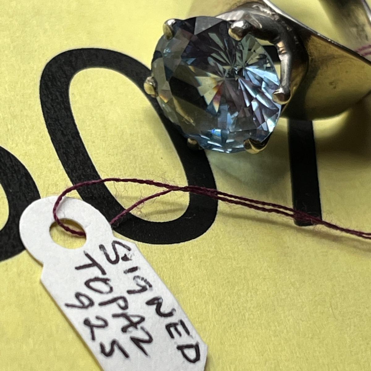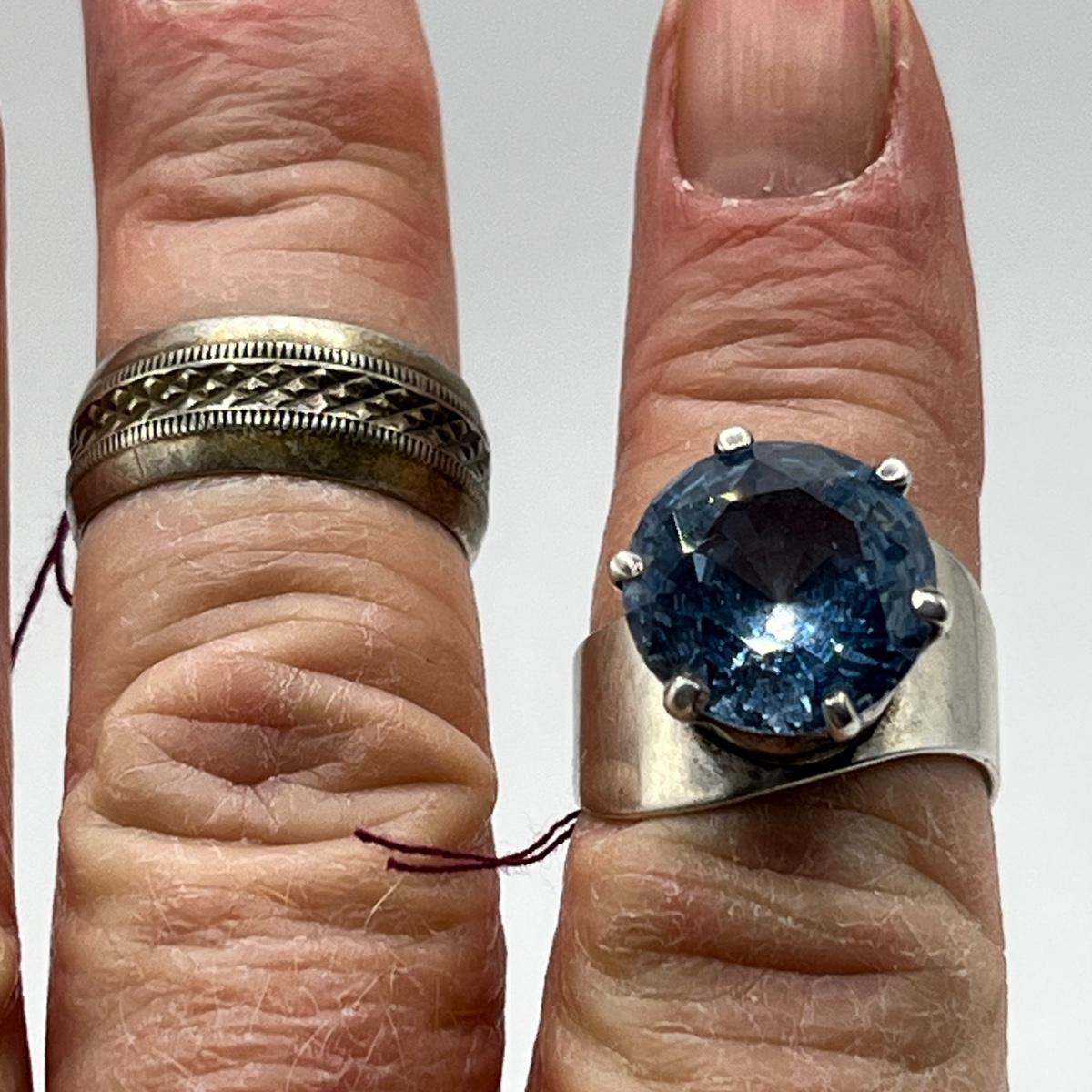 The Blue stone is Taxco, the band is NA. 9.9 grams total weight.