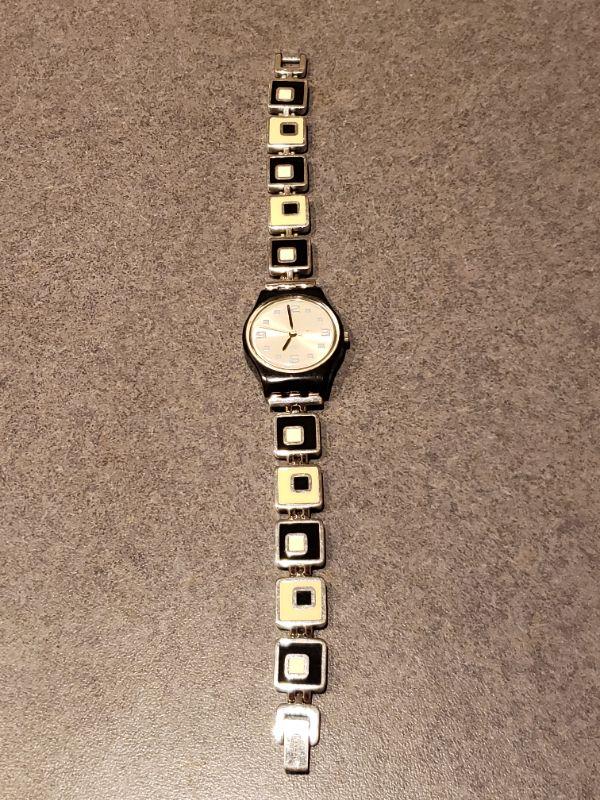 Lot 507: Swatch Watch with Cream and Black Square Band