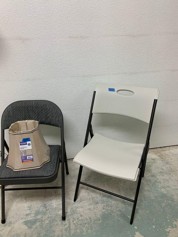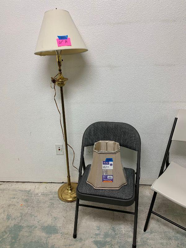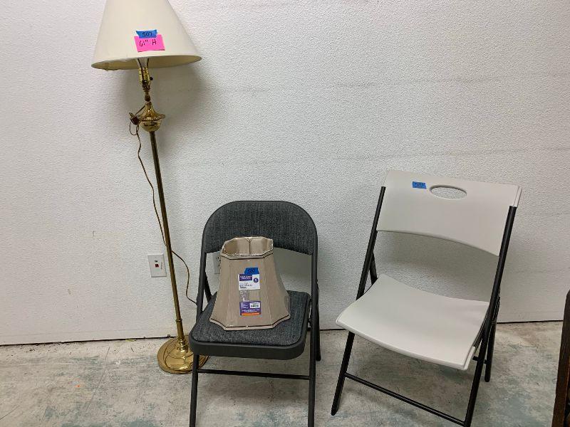 Stand up lamp, new shade, 2 chairs folding
