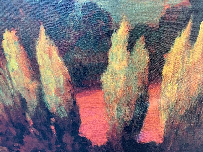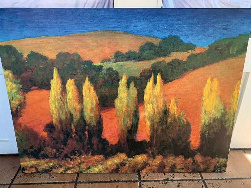 Oil on canvas tal trees poplar with red hills. Certificate of authenticity by Phillip Craig 2014