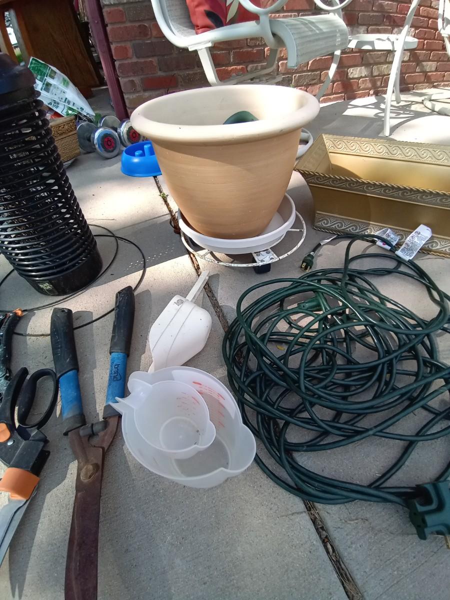LOT 507 BUG ZAPPER, YARD TOOLS, EXTENSION CORD AND FLOWER POT (G)
