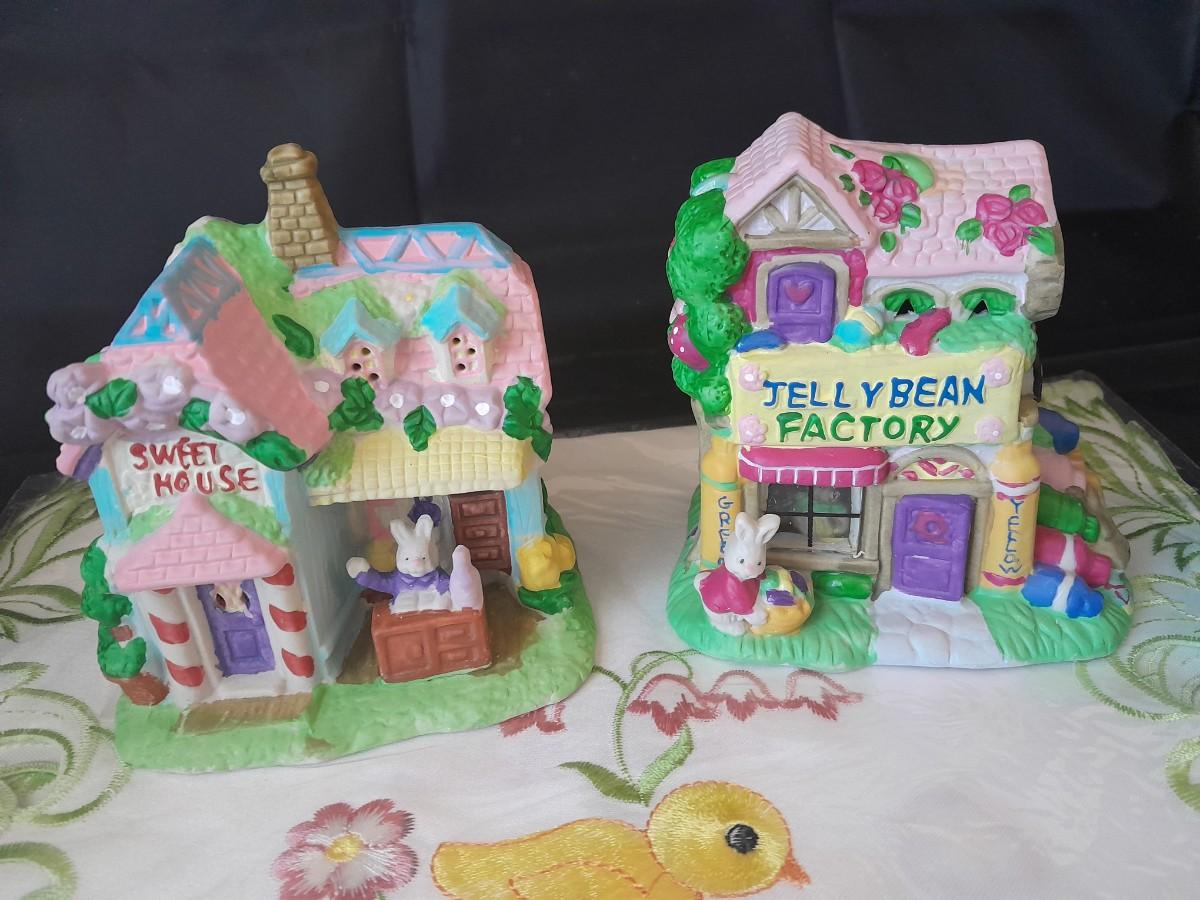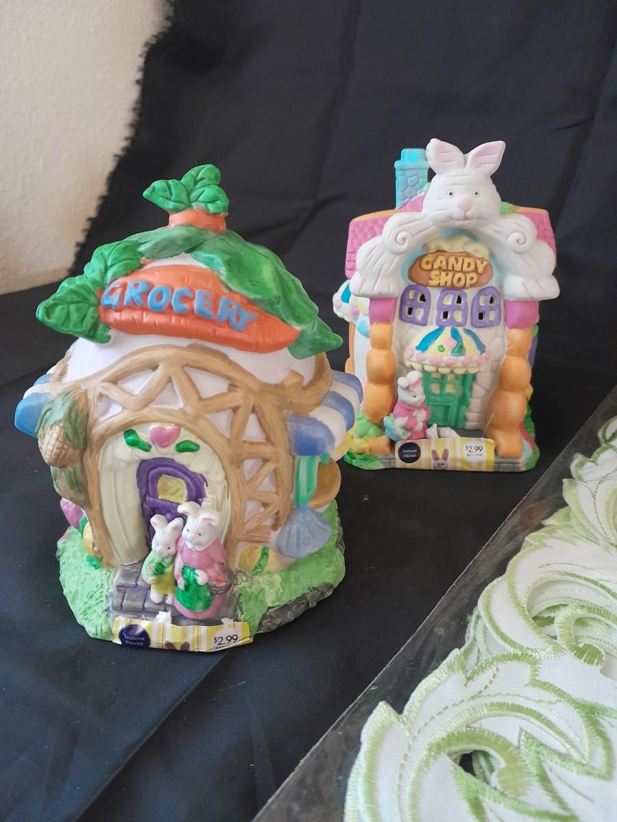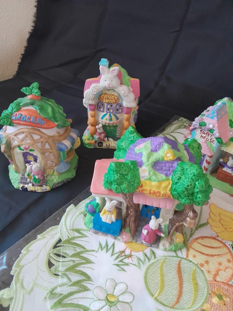 SMALL EASTER VILLAGE HOUSES AND EASTER TABLE RUNNER