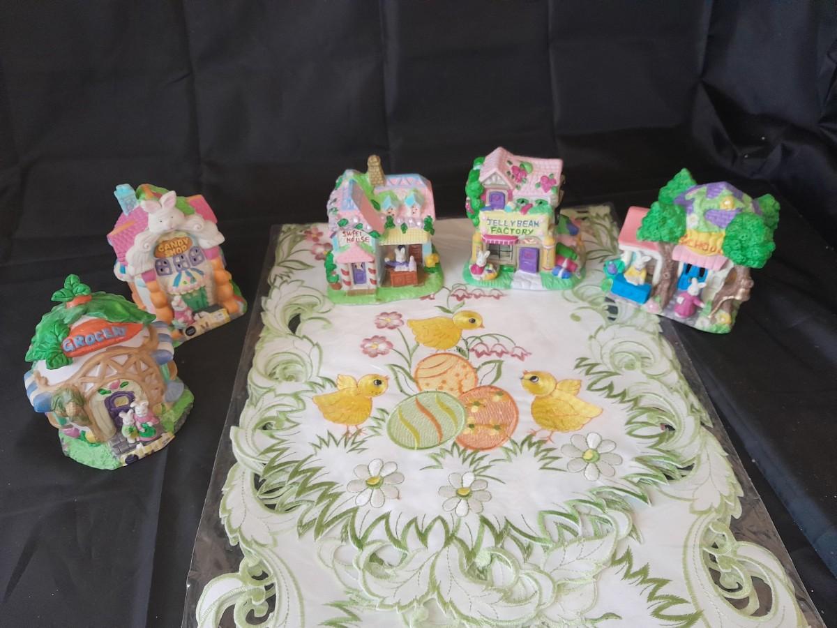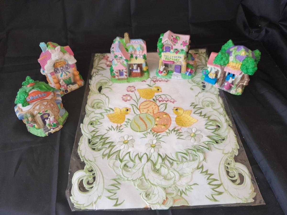 LOT 507 SMALL EASTER VILLAGE HOUSES AND EASTER TABLE RUNNER