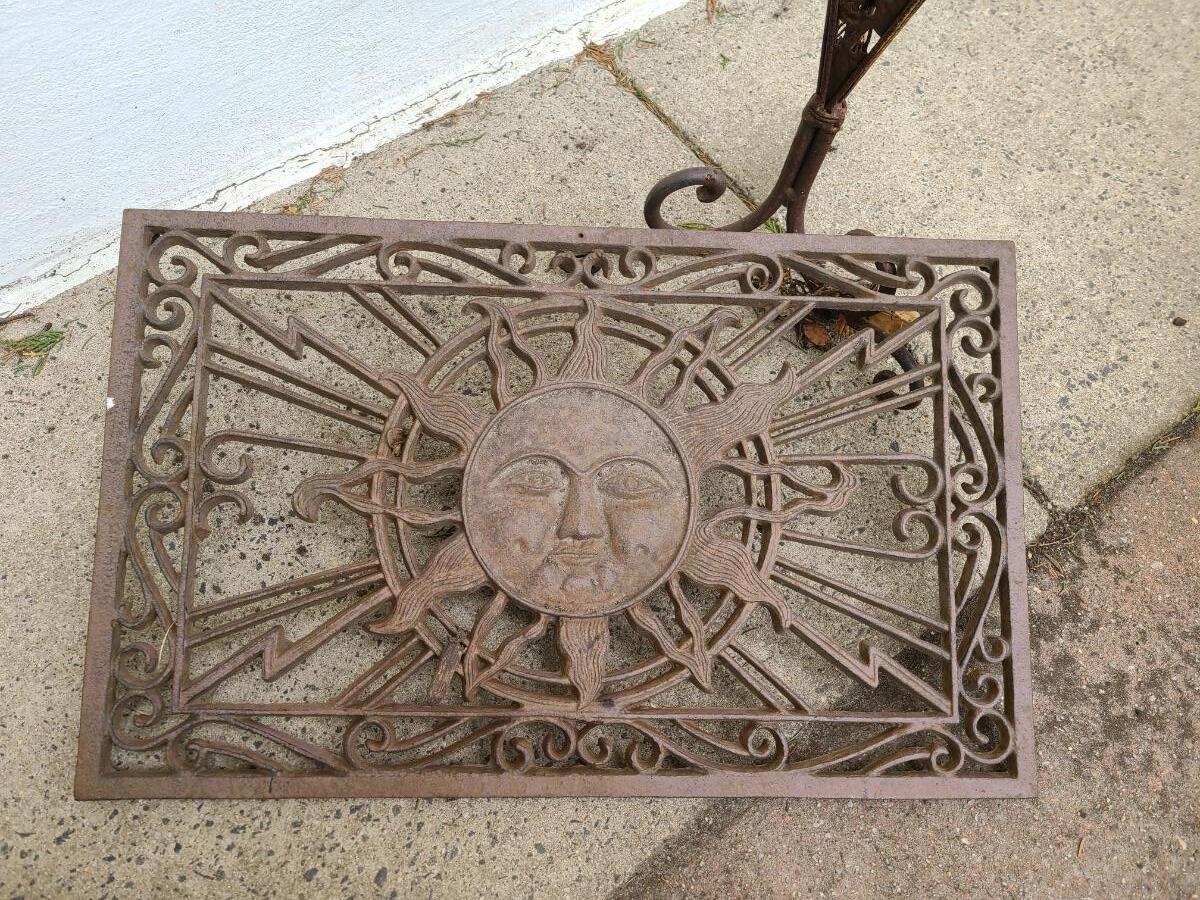Lot 508: Cast Iron Metal "Sun" Mat/Grate and More