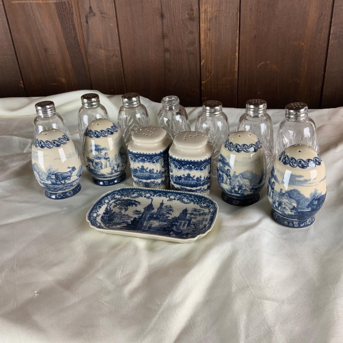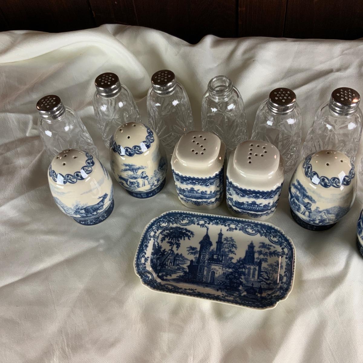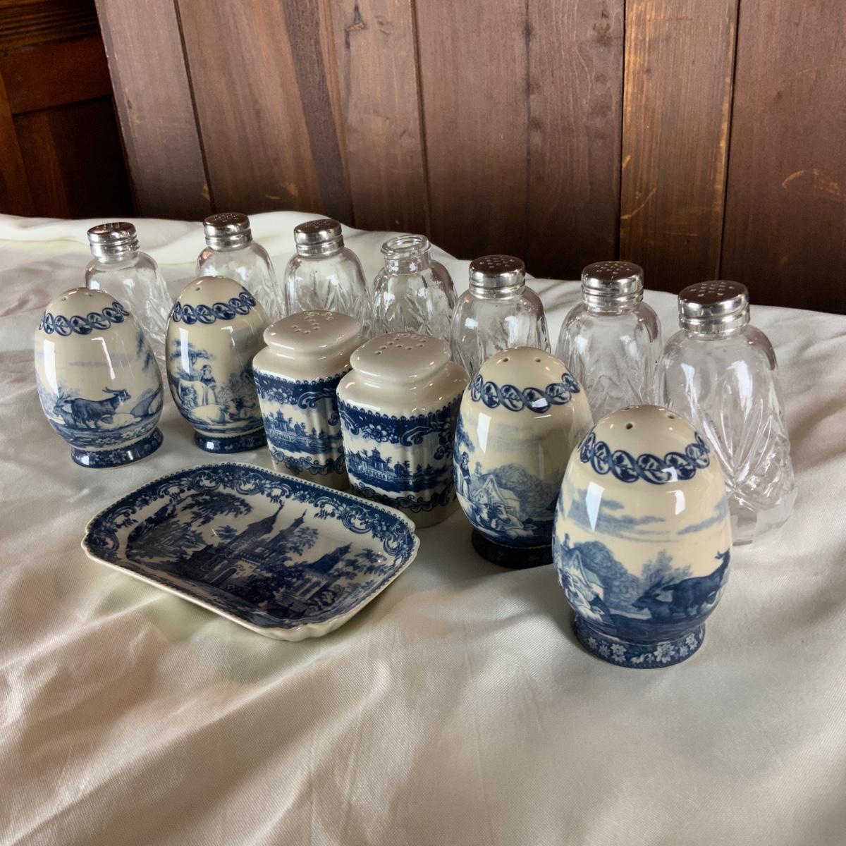 Modern Dishes and Salt and Pepper Shakers. Reproduction Currier and Ives and clear glass salt and pepper shakers. One is missing a lid. //::\\ Please see photos for details and condition. No attempt has been made to hide any imperfections. All items listed in this auction are warehouse items, and need to be cleaned. A majority of the items need restoration as well. All items are sold AS IS and WITHOUT GUARANTEE. If you are uncertain about an item, DO NOT BID. Due to the nature of this online auction in-person inspection is HIGHLY recommended. All Sales are FINAL. Pick Up Times are FIRM. Please confirm with your own schedule that you can pick up in the scheduled times listed in the Terms and Conditions. Any questions please message the auctioneer. DO NOT Contact The Harp Gallery.