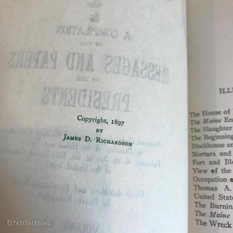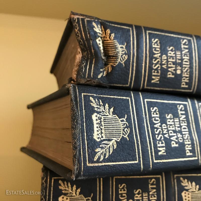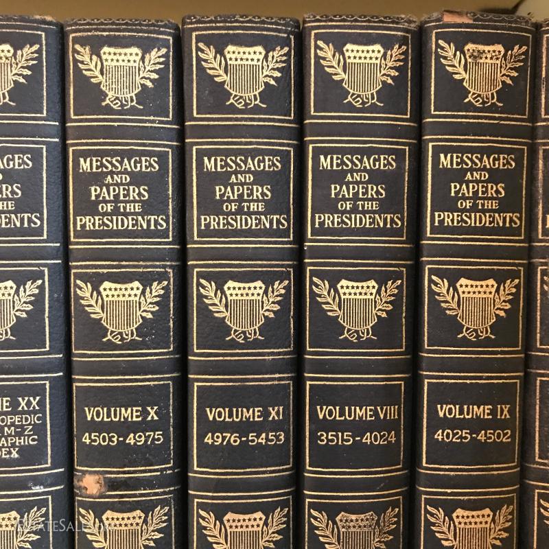 "Messages and Papers of the Presidents" full twenty-volume leather-bound hardcover set from 1897. Some later volumes do not have dates. Volume 13 has bend in top binding. Otherwise in good condition.