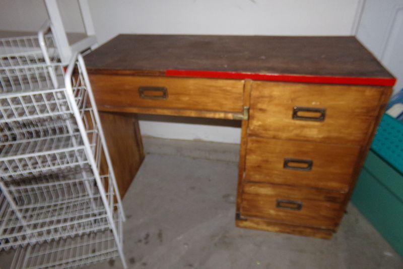 STUDENT DESK THAT HAS SOME WEAR TO THE TOP