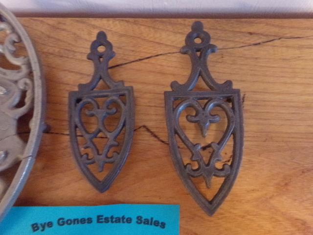 3 VARIOUS SIZES VINTAGE CAST-IRON TRIVETS FOR IRONS. ALL ARE IN GOOD CONDITION.